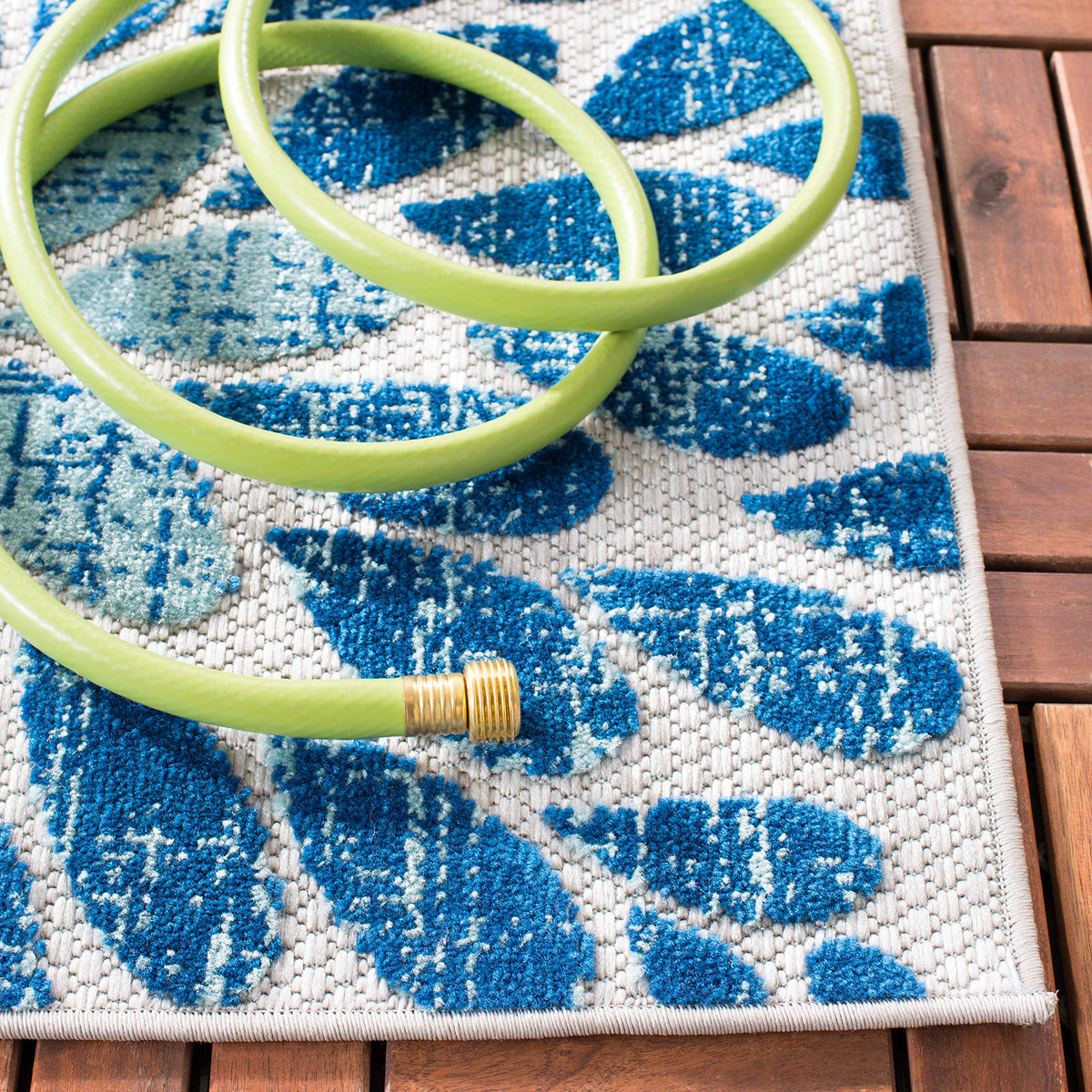 Safavieh Cabana Collection Area Rug - 9' X 12', Grey & Blue, Floral Design, Non-Shedding & Easy Care, Indoor/Outdoor & Washable-Ideal For Patio, Backyard, Mudroom (Cbn832F)