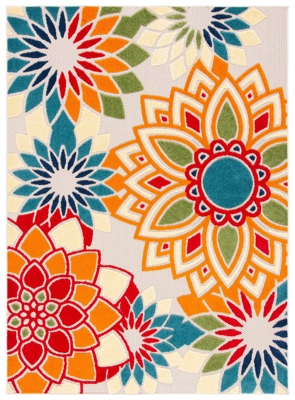 Safavieh Cabana Collection Area Rug - 9' X 12', Ivory & Orange, Floral Design, Non-Shedding & Easy Care, Indoor/Outdoor & Washab