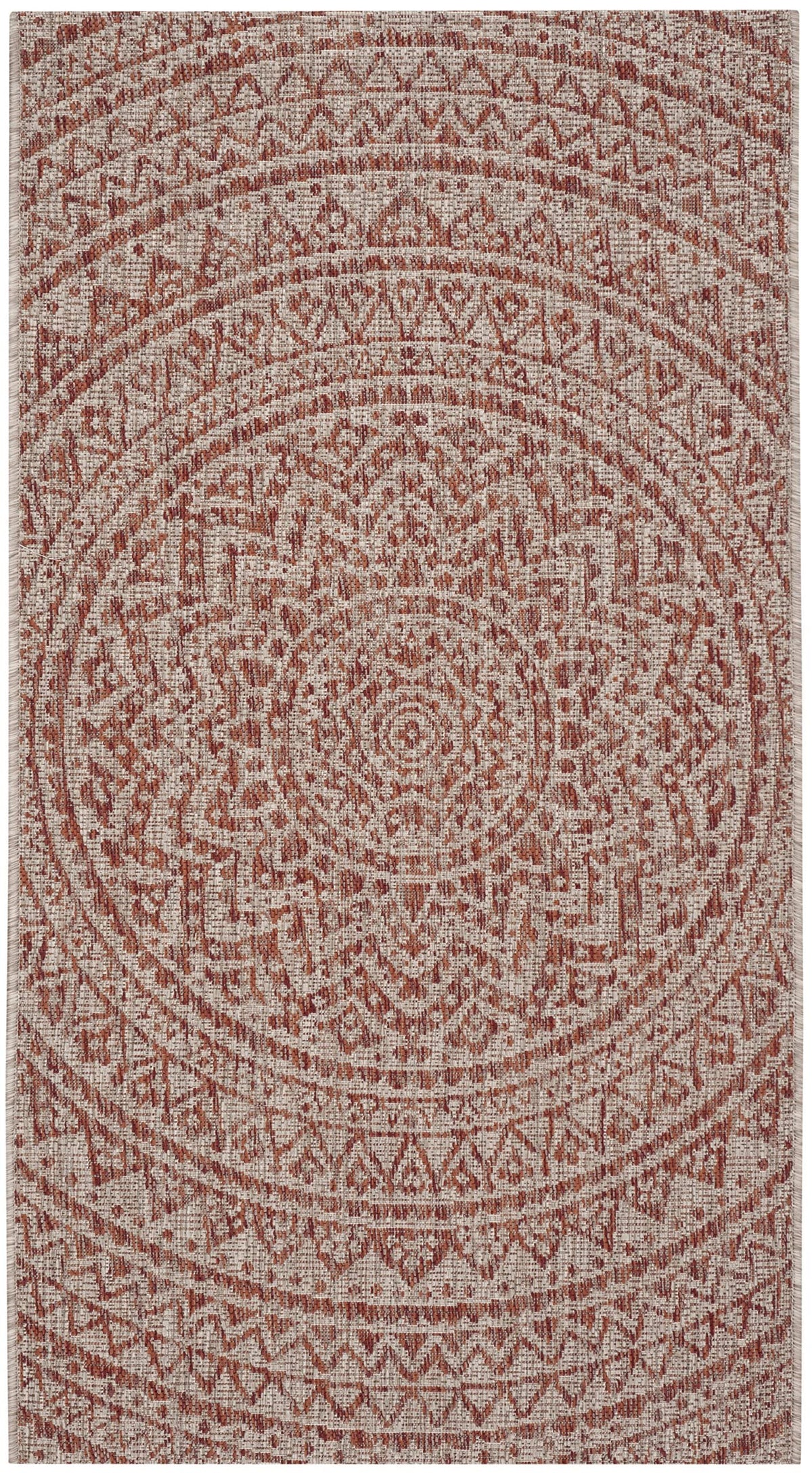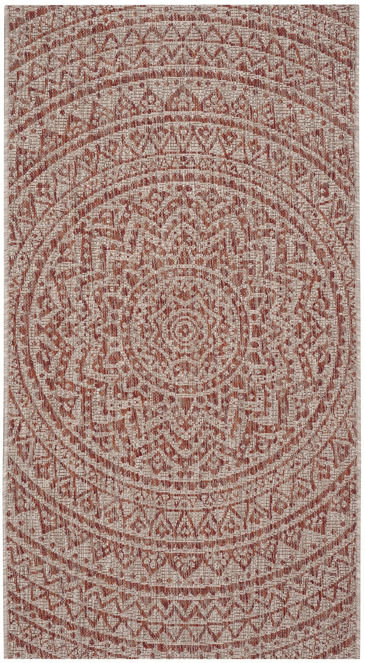 DescriptionSafavieh' s Courtyard Collection is inspired by timeless designs crafted with the softest polypropylene available. This rug is crafted using a power loomed construction and features a main accent color of natural. Perfect for any backyard, patio, deck or poolside, this rug will instantly turn your outdoor area into a resort-style entertaining space. Finely crafted for seasons in the sun and years of open-air gatherings, the Courtyard rug instantly elevates any interior or exterior décor to a space of visual inspiration. More than a decorative enhancement, this rug is both and - to ensure carefree maintenance. With its style, practicality, and transitional decorating options, this rug extends an open invitation to gather and may just spark impromptu parties. Primary Color: Terracotta Pile Height: 0.25 inches Material: Polypropylene Style: Contemporary Construction: power loomed Rug Type: Indoor/Outdoor Feature: Latex Free Rug Dimensions: 6'7' x 9'6'