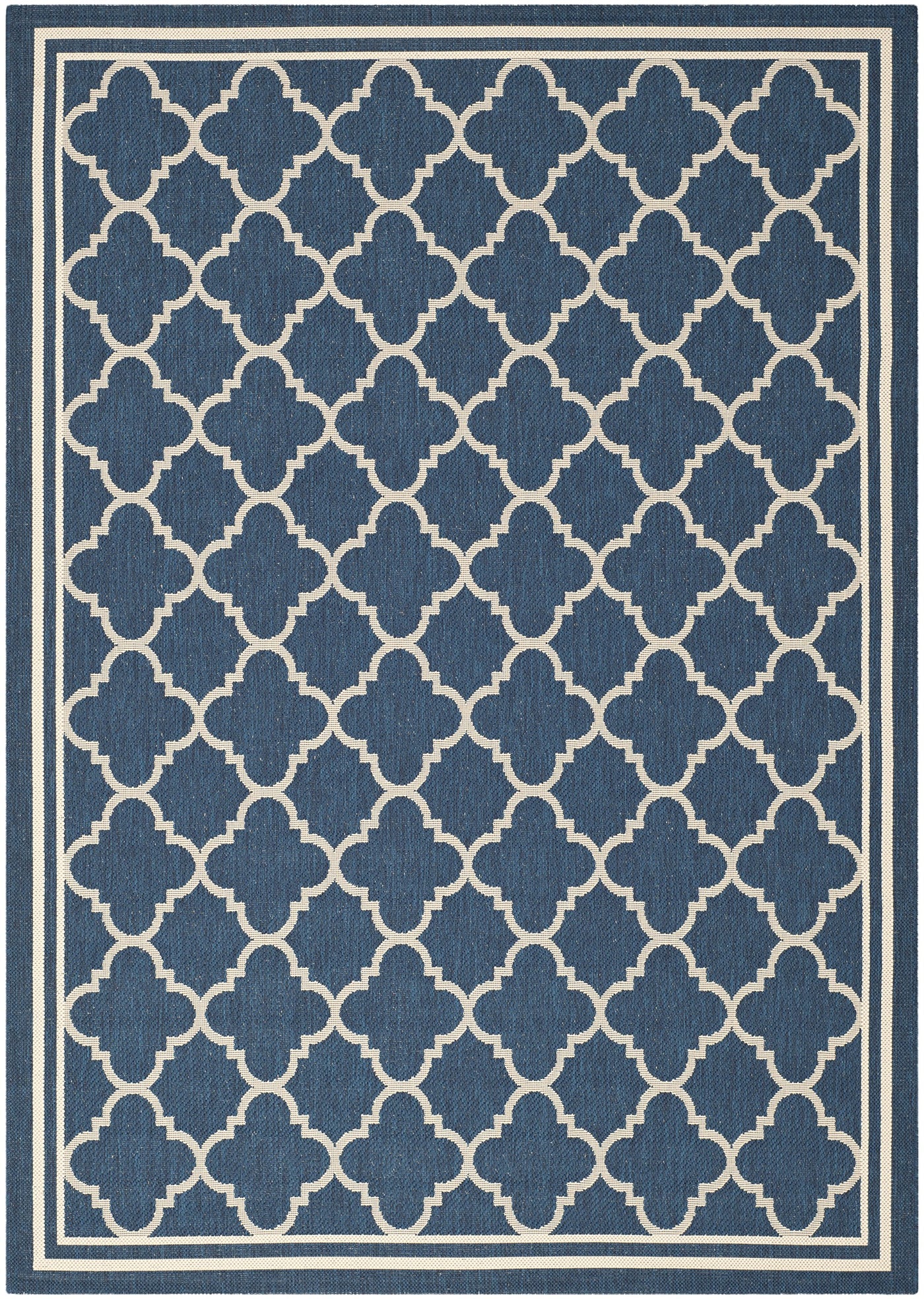 Safavieh Courtyard Collection 4' X 5'7' Navy/Beige Cy6918 Trellis Indoor/ Outdoor Waterproof Easy Cleaning Patio Backyard Area Rug