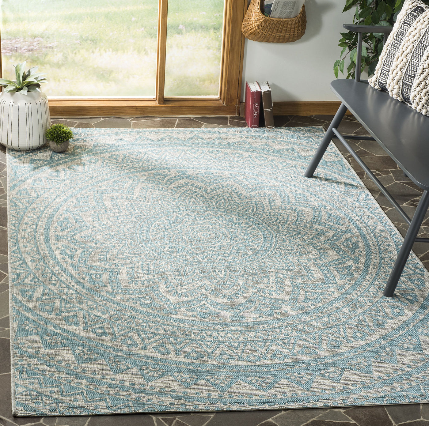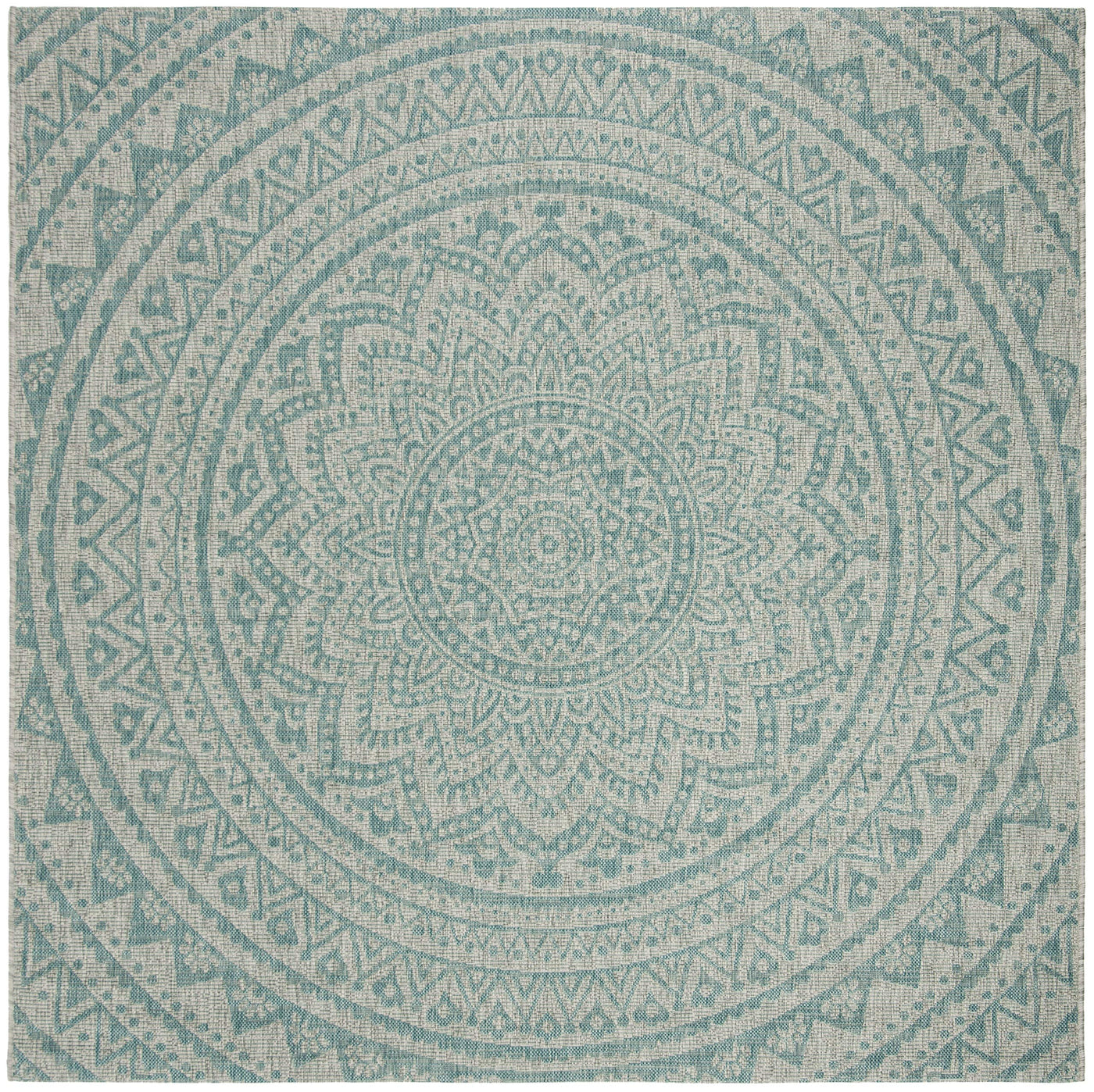 Safavieh Courtyard Collection 5'3' Square Light Grey / Aqua Cy8734 Indoor/ Outdoor Waterproof Easy Cleaning Patio Backyard Mudroom Area Rug