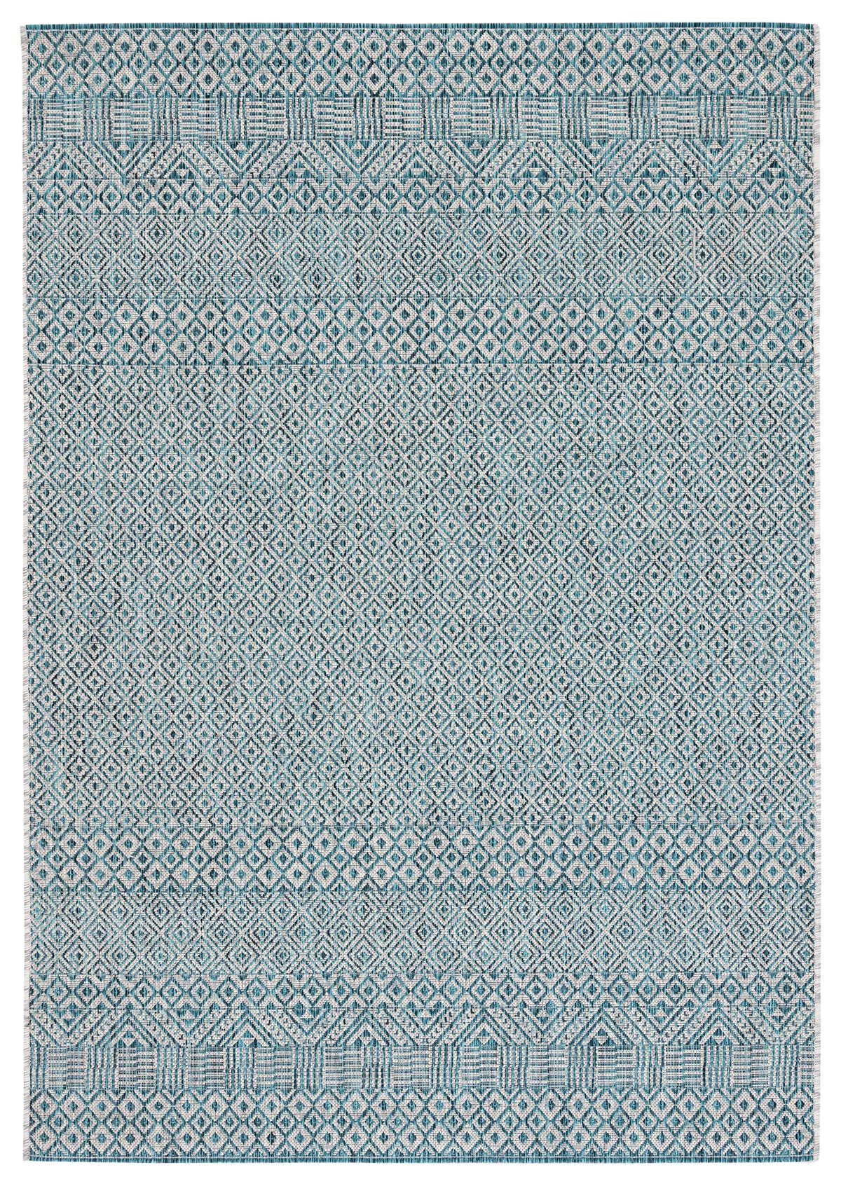 Safavieh Courtyard Collection 5'3' X 7'7' Grey/Aqua Cy8235 Indoor/ Outdoor Patio Backyard Mudroom Area Rug