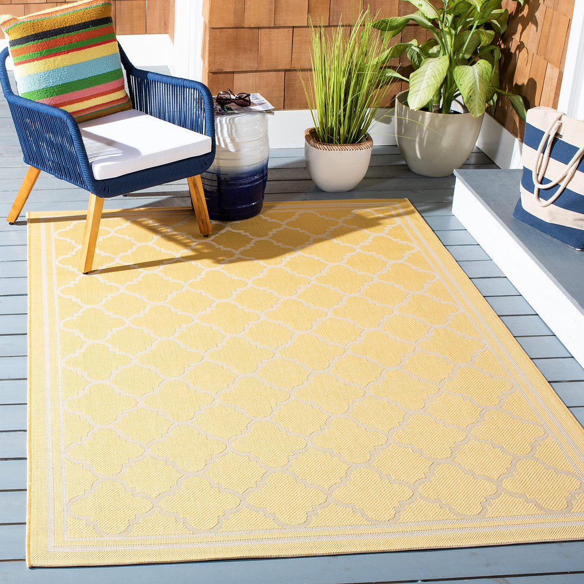Safavieh Courtyard Collection 6'7' X 9'6' Gold/Beige Cy6918 Trellis Indoor/ Outside Waterproof Easy Cleansingpatio Backyard Mudroom Area Mat