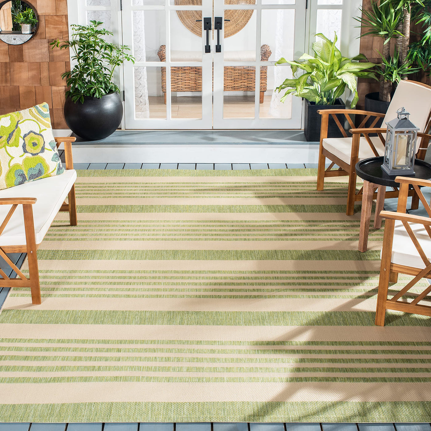 Safavieh Courtyard Collection 8' X 11' Beige/Sweet Pea Cy6062 Stripe Indoor/ Outdoor Waterproof Easy-Cleaning Patio Backyard Mud
