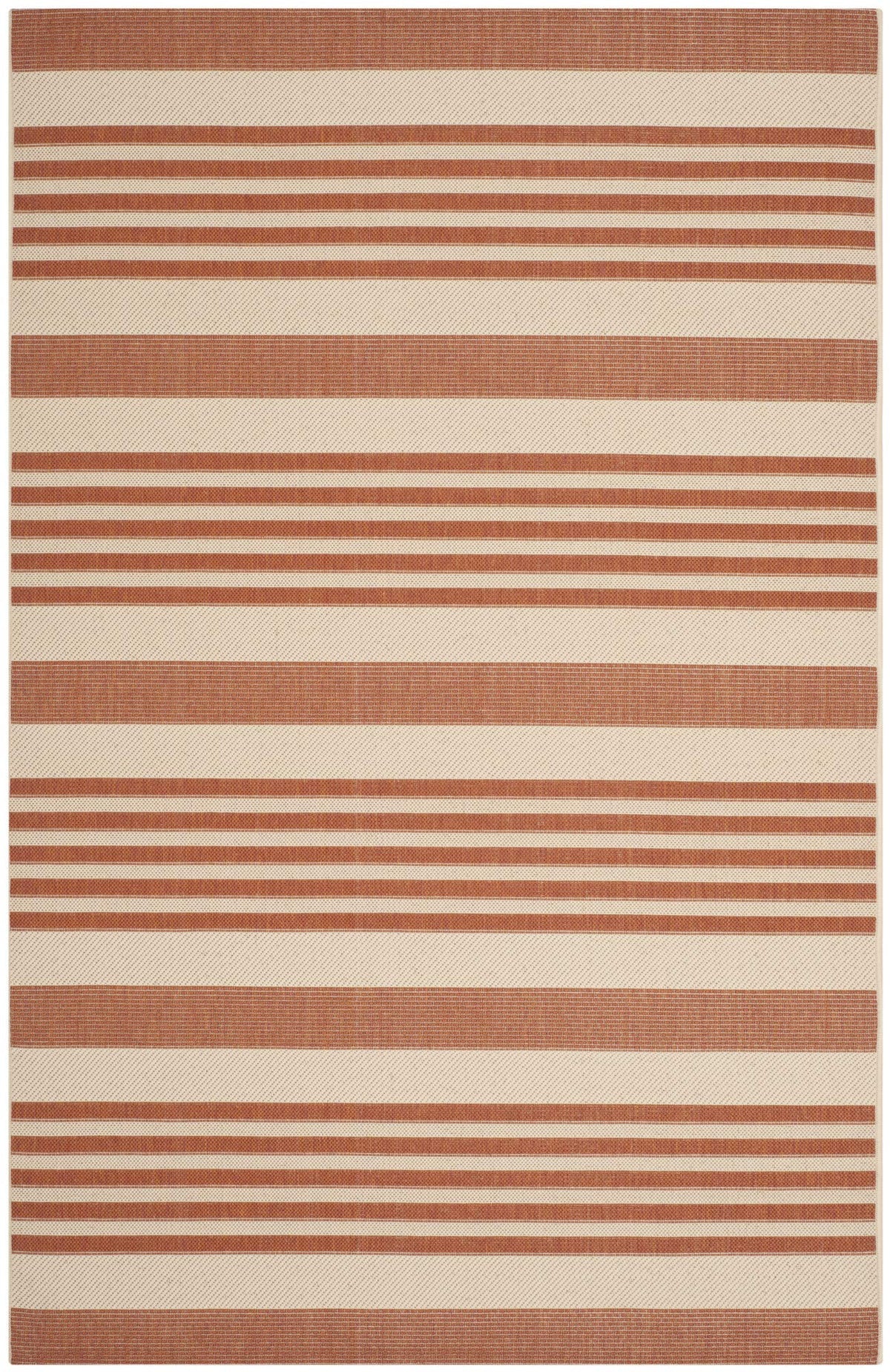 Safavieh Courtyard Collection Area Rug - 5'3'' X 7'7'', Terracotta & Beige, Stripe Design, Non-Shedding & Easy Care, Indoor/Outd