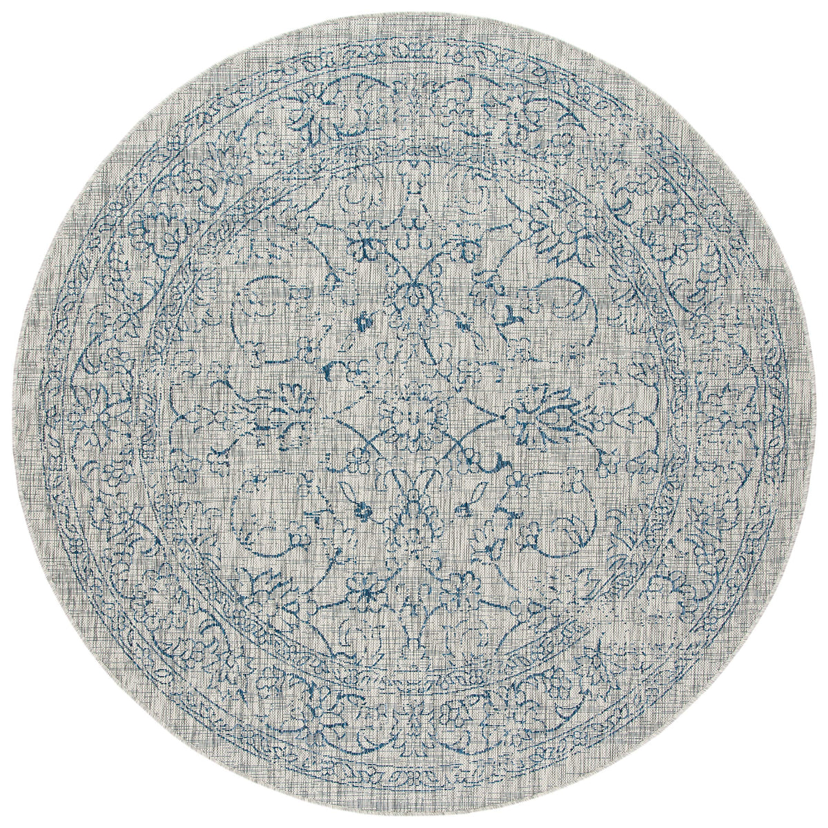 Safavieh Courtyard Collection Area Rug - 7'1 Round, Grey & Navy, Non-Shedding & Easy Care, Indoor/Outdoor & Washable-Ideal For Patio, Backyard, Mudroom (Cy8680-36812)