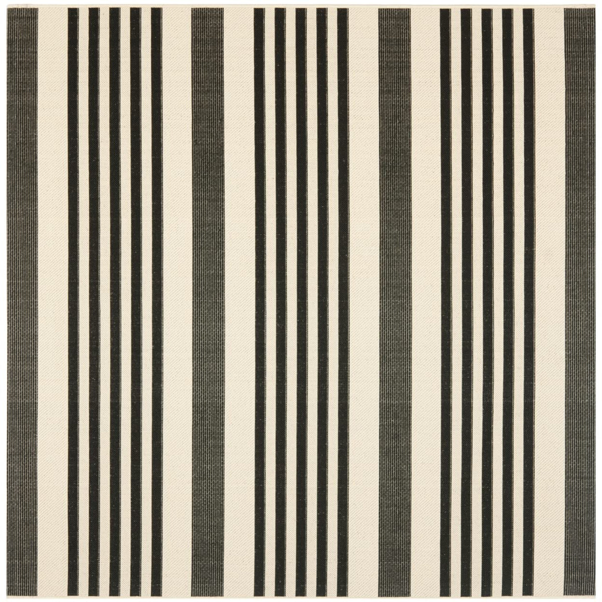 Safavieh Courtyard Collection Area Rug - 7'1 Square, Black & Bone, Stripe Design, Non-Shedding & Easy Care, Indoor/Outdoor & Was
