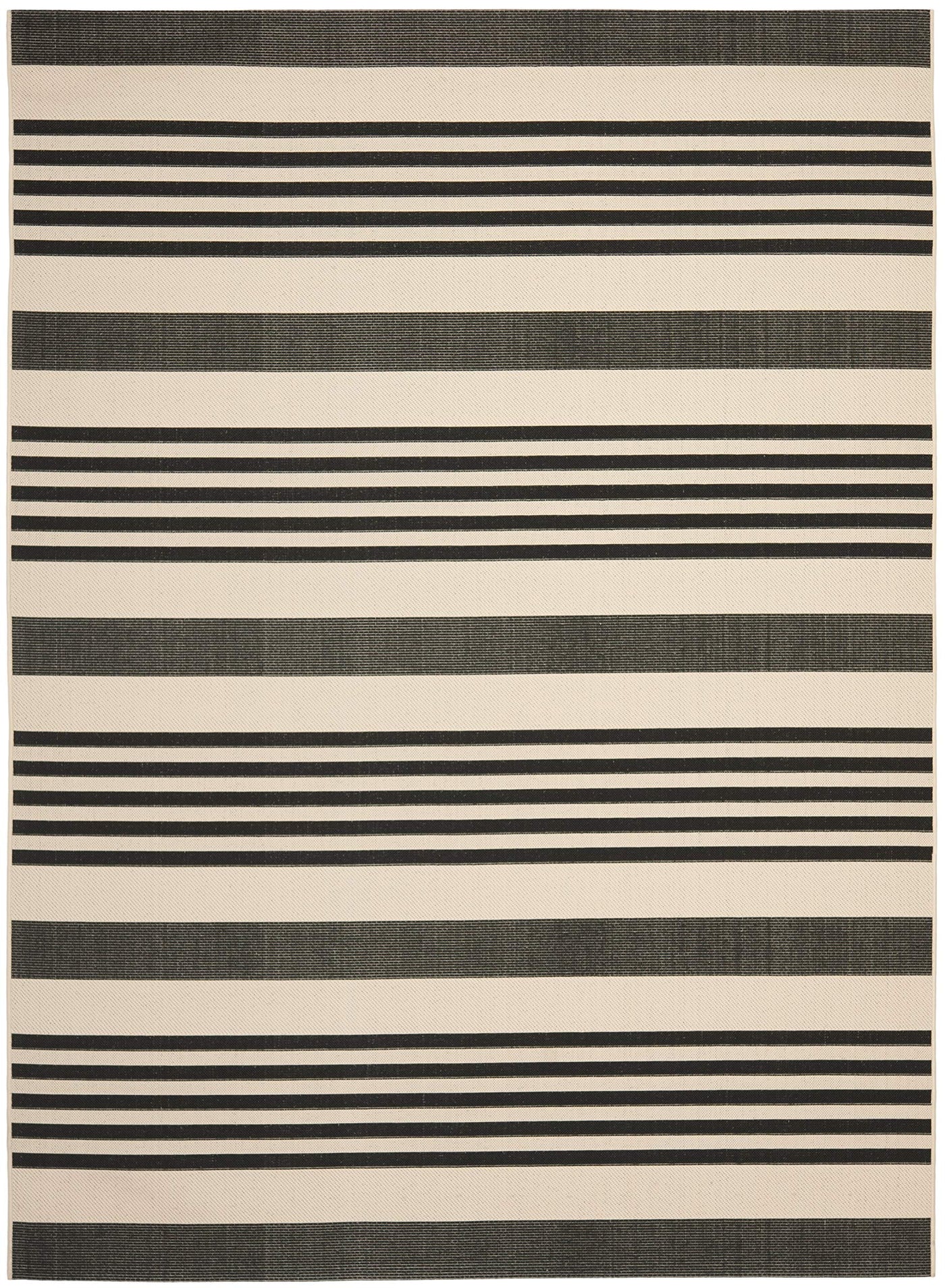 Safavieh Courtyard Collection Area Rug - 9' X 12', Black & Bone, Stripe Design, Non-Shedding & Easy Care, Indoor/Outdoor & Washa