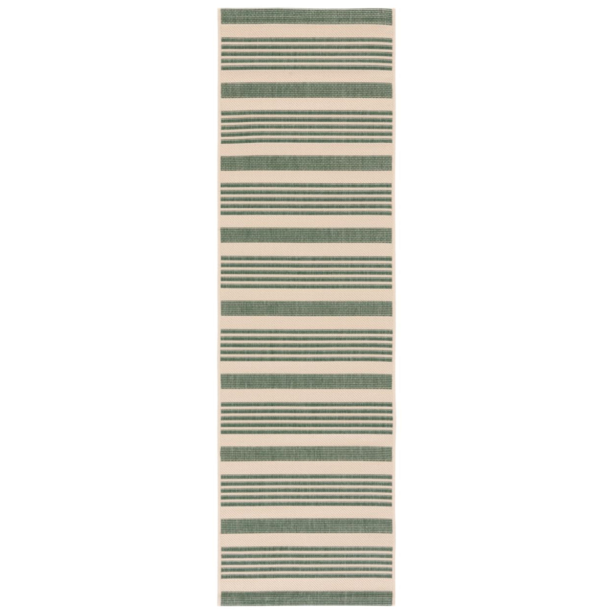 Safavieh Courtyard Collection Runner Rug - 2'3'' X 10', Beige & Dark Green, Stripe Design, Non-Shedding & Easy Care, Indoor/Outd