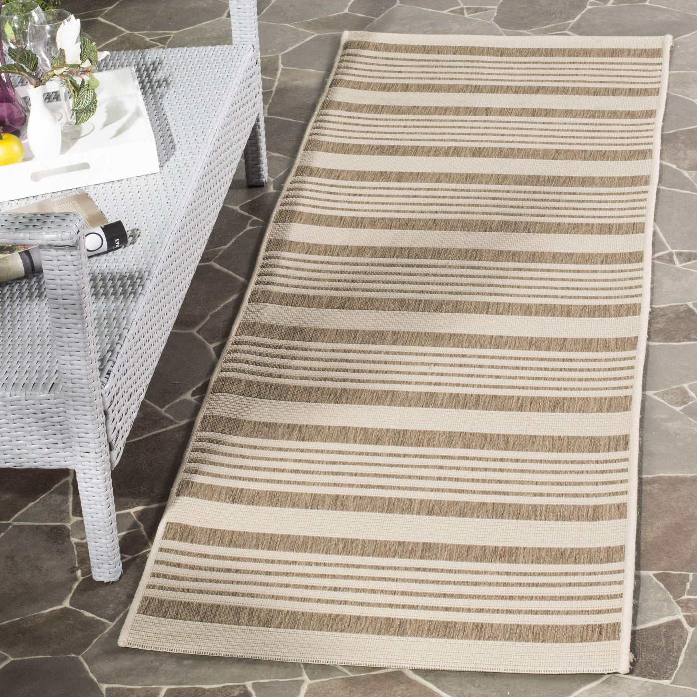 Q: What material is the SAFAVIEH Courtyard Runner Rug made of?A: The rug is crafted from soft polypropylene fibers, which are durable and resistant to staining, weather, and UV rays.