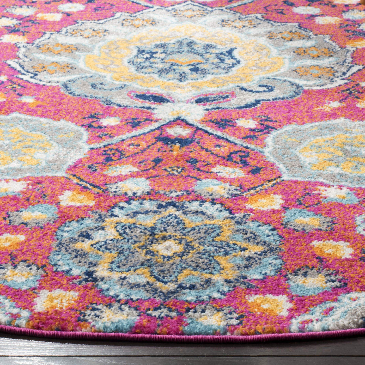 Q: What colors are available for this area rug?A: The SAFAVIEH Madison Collection rug features a vibrant fuchsia and gold color palette, adding a chic and bohemian touch to your decor.