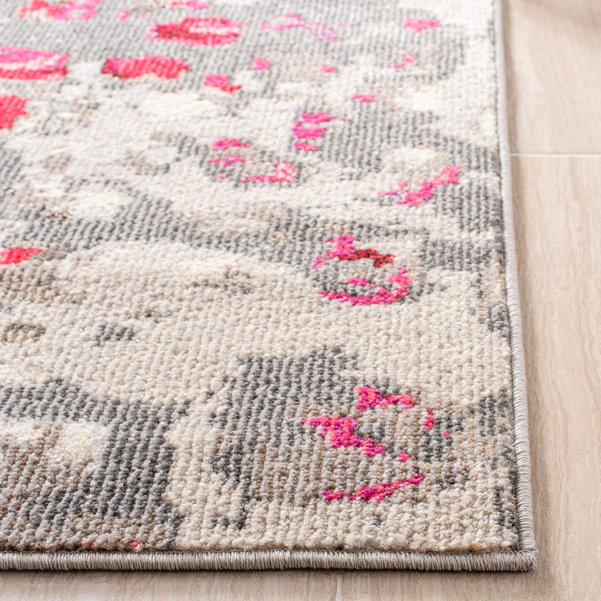 Q: What colors are available for the SAFAVIEH Madison Collection Area Rug?A: The rug features a stylish grey and red color scheme, which beautifully enhances any room's decor, making it versatile for various home styles.