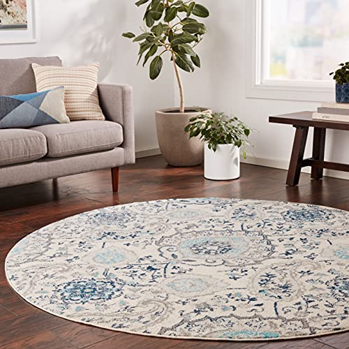 Safavieh Madison Collection Area Rug - 6'7'' Round, Cream & Light Grey, Boho Chic Glam Paisley Design, Non-Shedding & Easy Care,