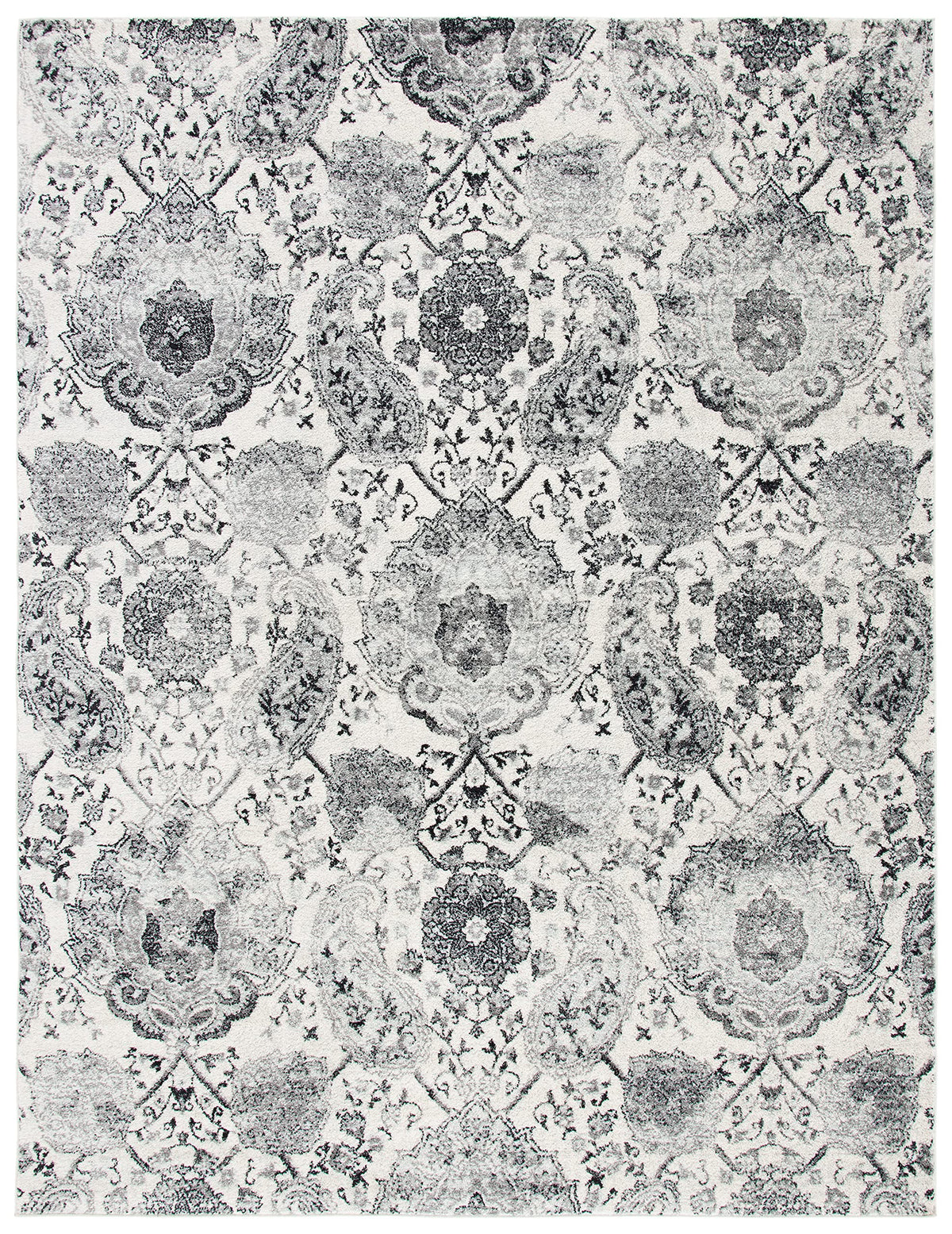Safavieh Madison Collection Area Rug - 6'7'' X 9'2'', Cream & Silver, Boho Chic Glam Paisley Design, Non-Shedding & Easy Care, I