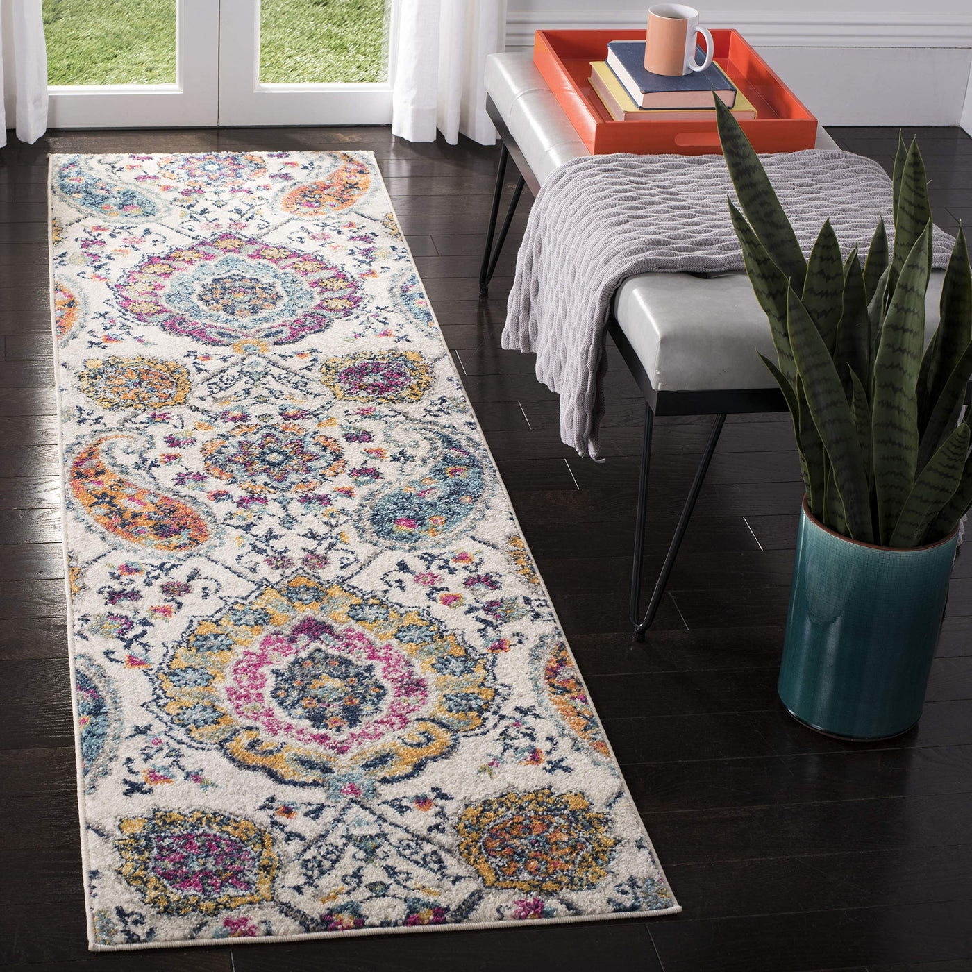 Safavieh Madison Collection Runner Rug - 2'3'' X 14', Cream & Multi, Boho Chic Glam Paisley Design, Non-Shedding & Easy Care, Id