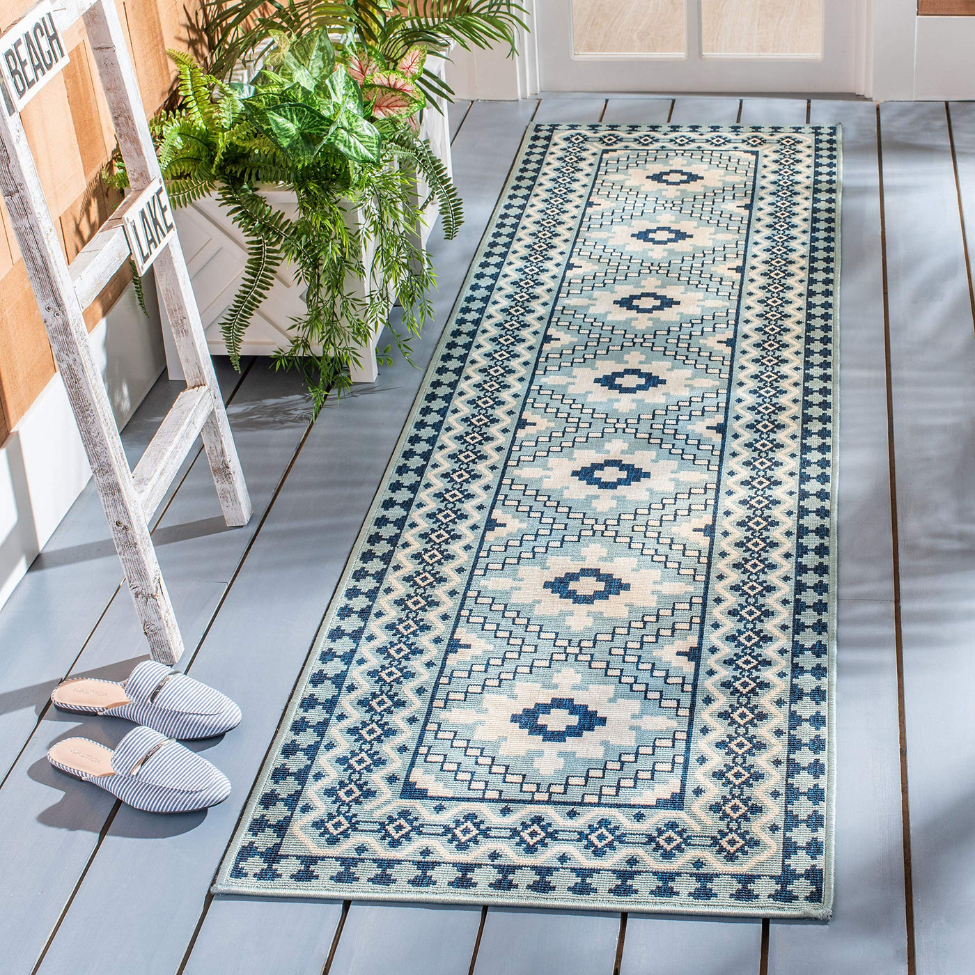 Safavieh Veranda Collection 2'3' X 8' Ivory/Blue Ver099 Boho Indoor/ Outdoor Non-Shedding Easy Scrubbing Patio Backyard Porch De