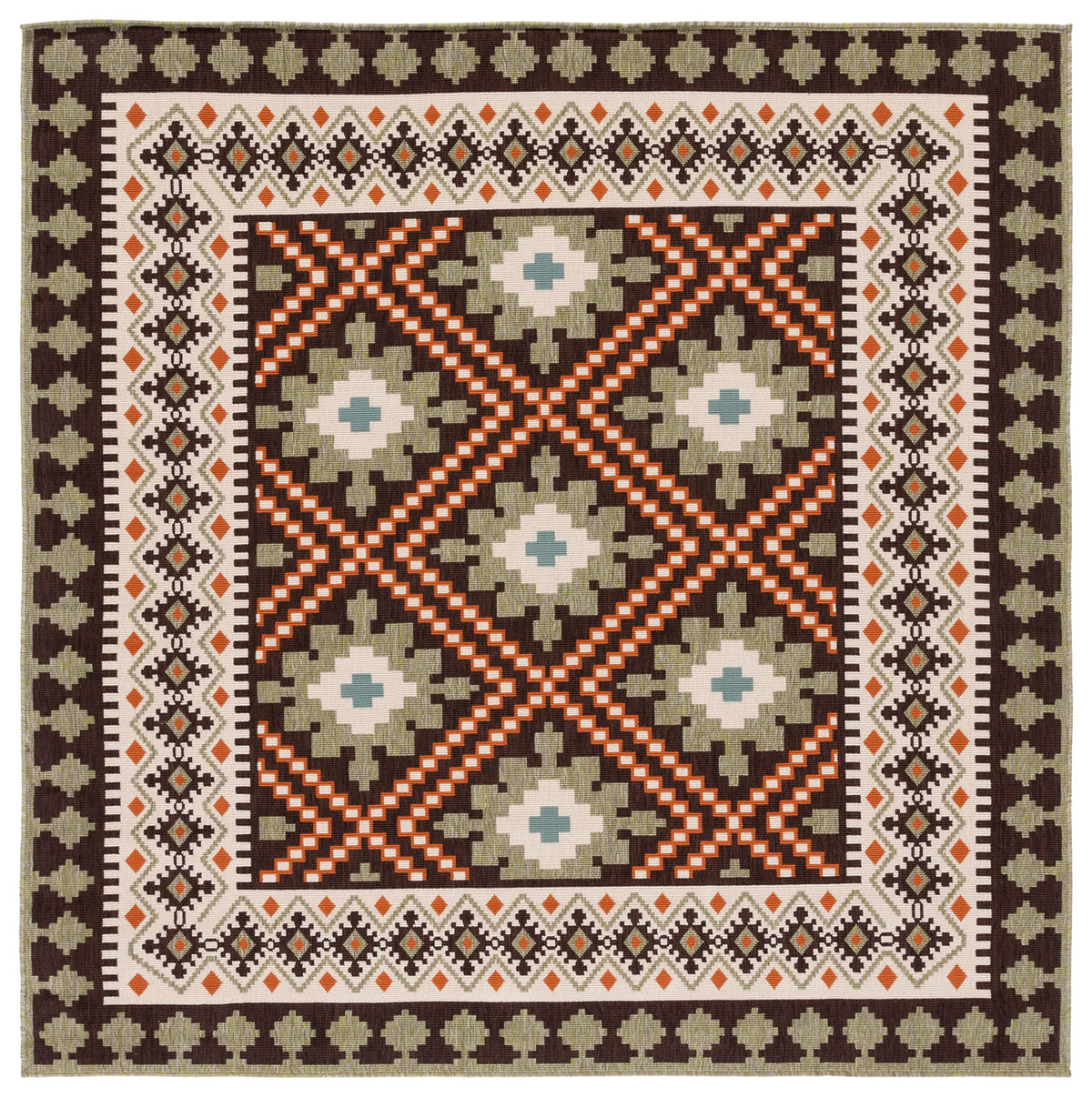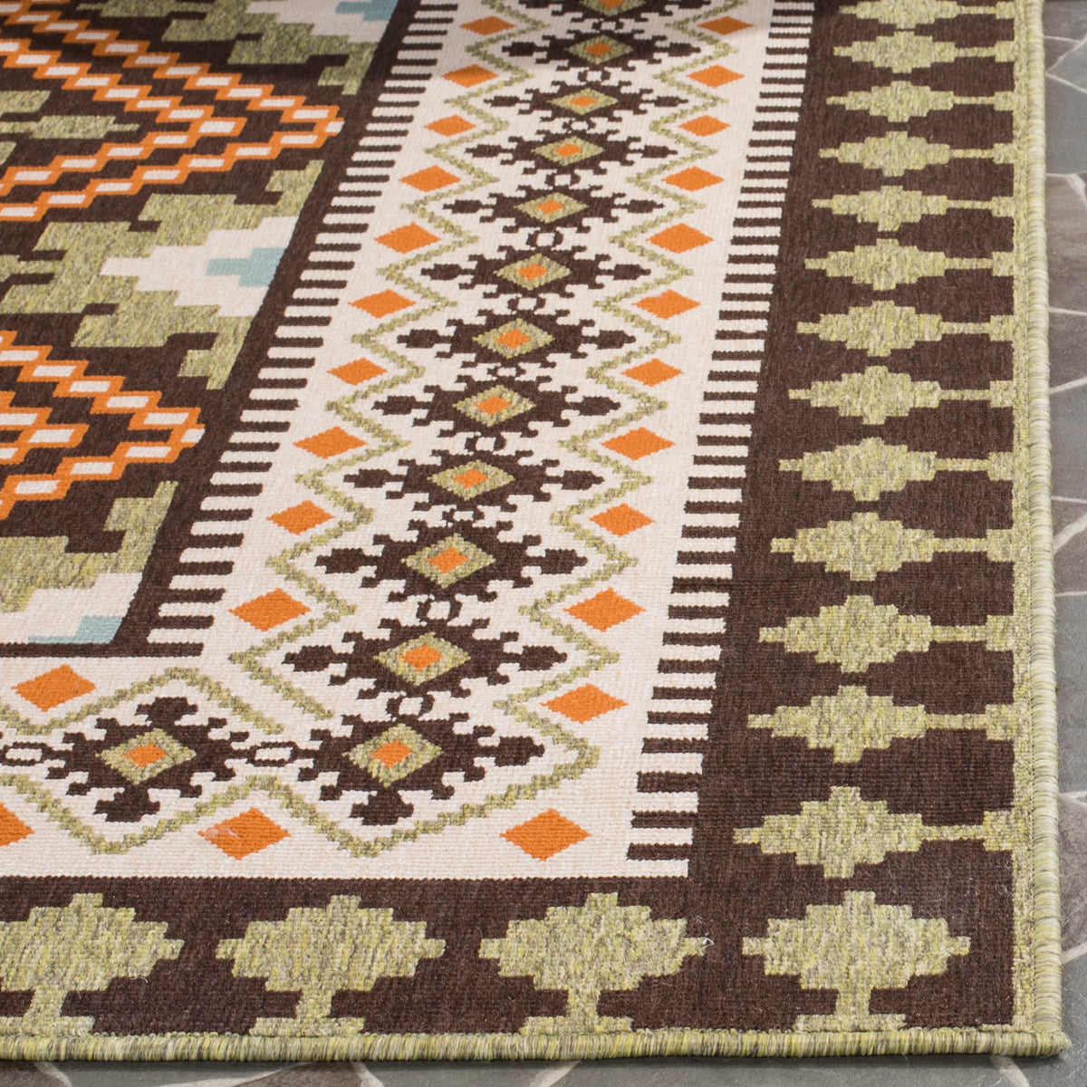 Safavieh Veranda Collection Area Rug - 6'7' Square, Brown & Terracotta, Boho Design, Non-Shedding & Easy Care, Indoor/Outdoor & Washable-Ideal For Patio, Backyard, Mudroom (Ver099-0725)