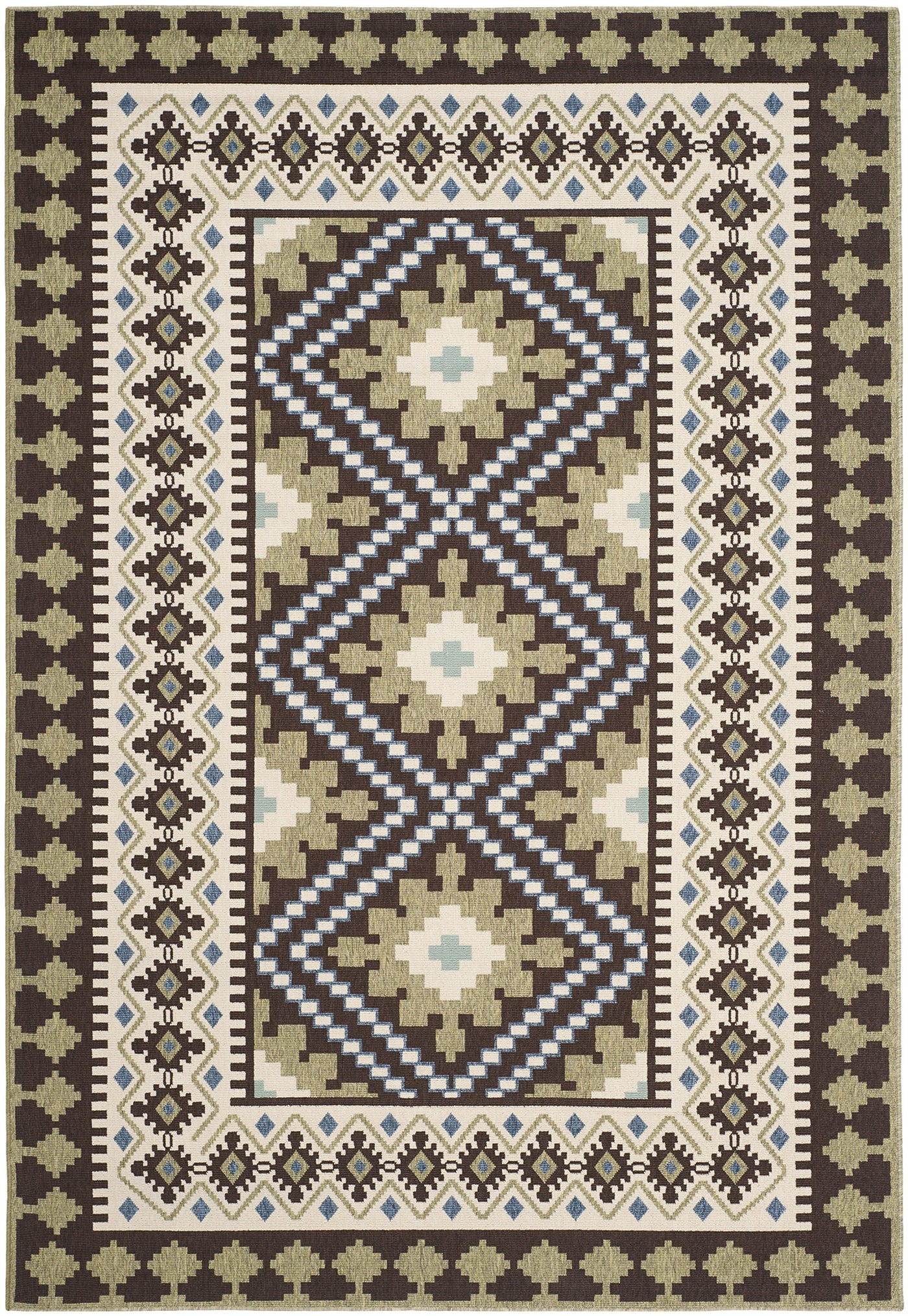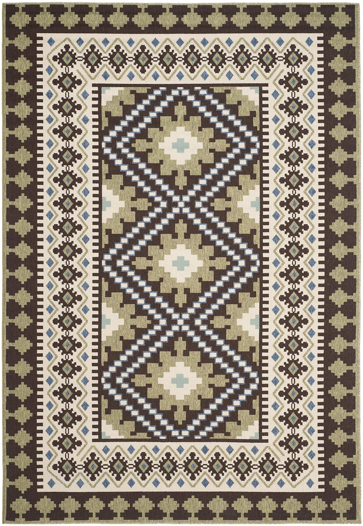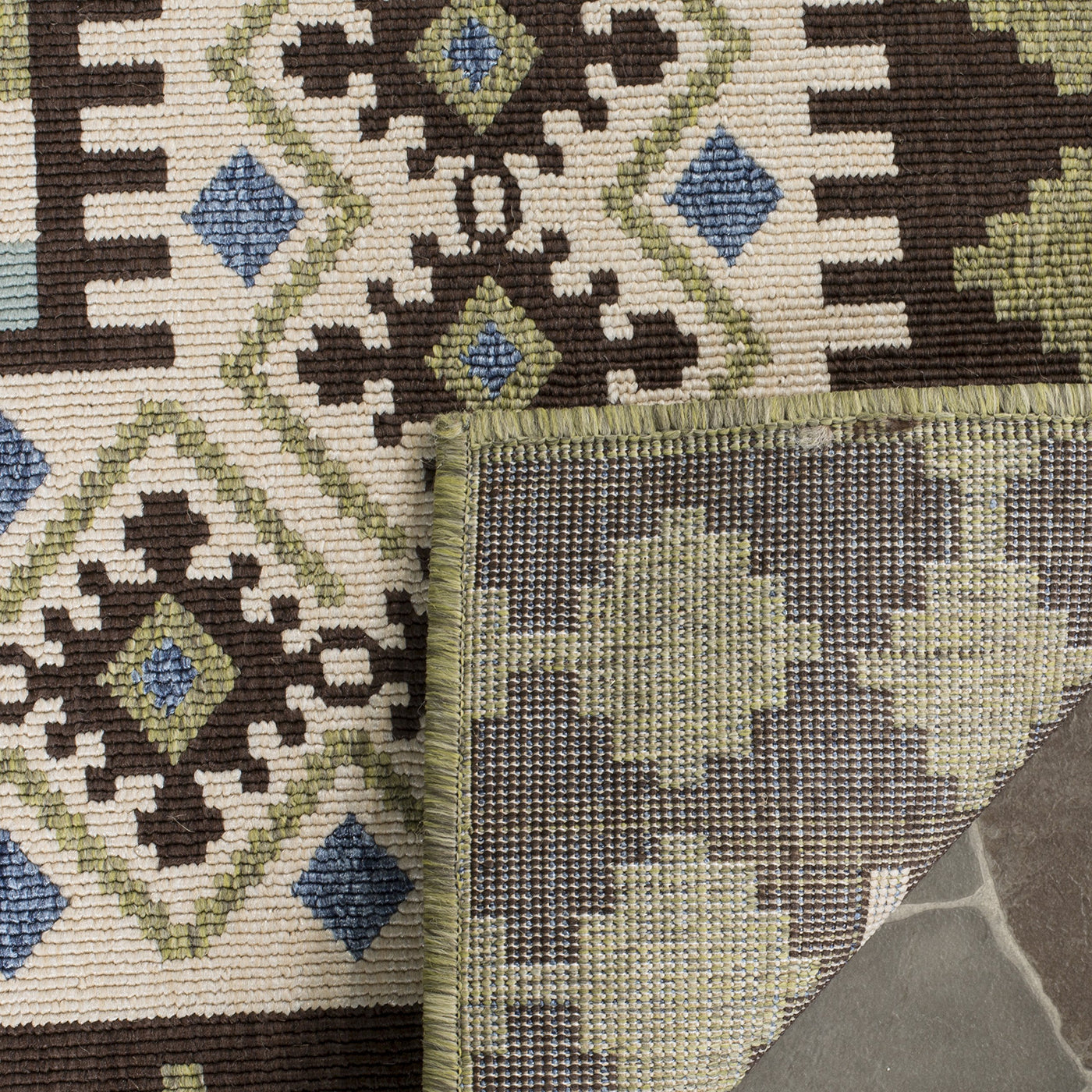 Safavieh Veranda Collection Area Rug - 6'7' X 9'6', Chocolate & Green, Boho Design, Non-Shedding & Easy Care, Indoor/Outdoor & Washable-Ideal For Patio, Backyard, Mudroom (Ver099-0624)