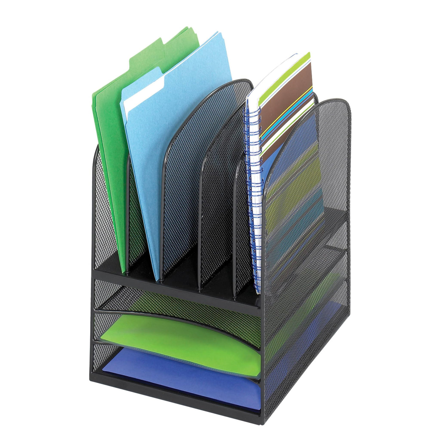 Safco 3266Bl Onyx Mesh 5 Sorter, 3 Tray Desktop Organizer. Durable Steel Mesh Construction -3 Horizontal Trays. Multifunctional