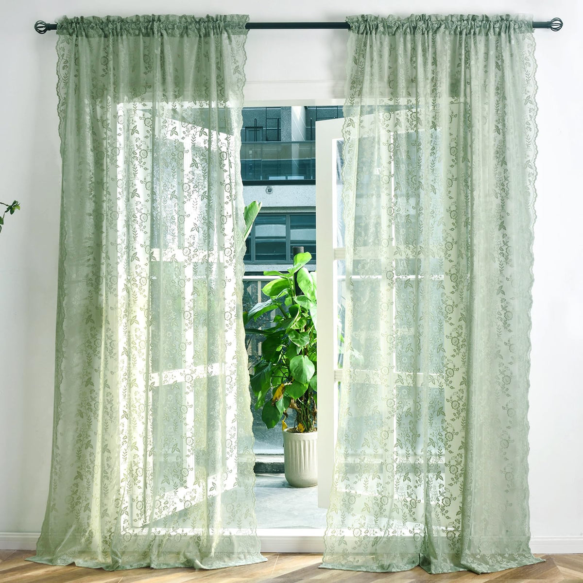 Q: What style do these curtains complement?A: These curtains have a delicate scalloped floral lace design that is perfect for shabby chic, vintage, or country-inspired decor, making them a versatile choice for various interior styles.