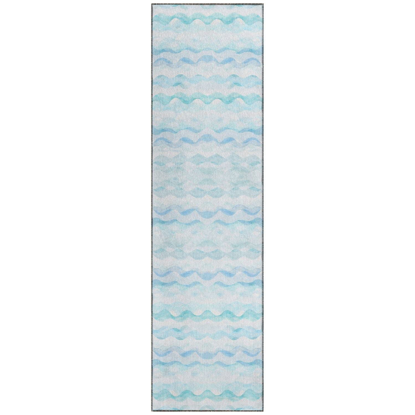 Q: What type of decor does this rug complement best?A: With its sophisticated aqua color and minimalist design, this area rug complements modern, contemporary, and even traditional decor styles beautifully.