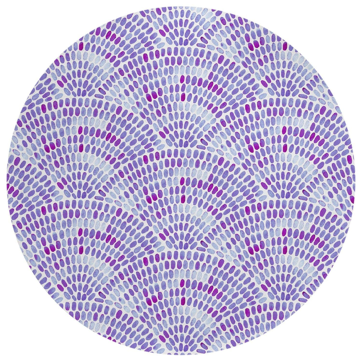 Q: What are the dimensions of the Camberly CM6 Purple Casual Rug?A: The Camberly CM6 Purple Casual Rug measures 8 feet by 8 feet, making it a perfect round size for various living spaces.