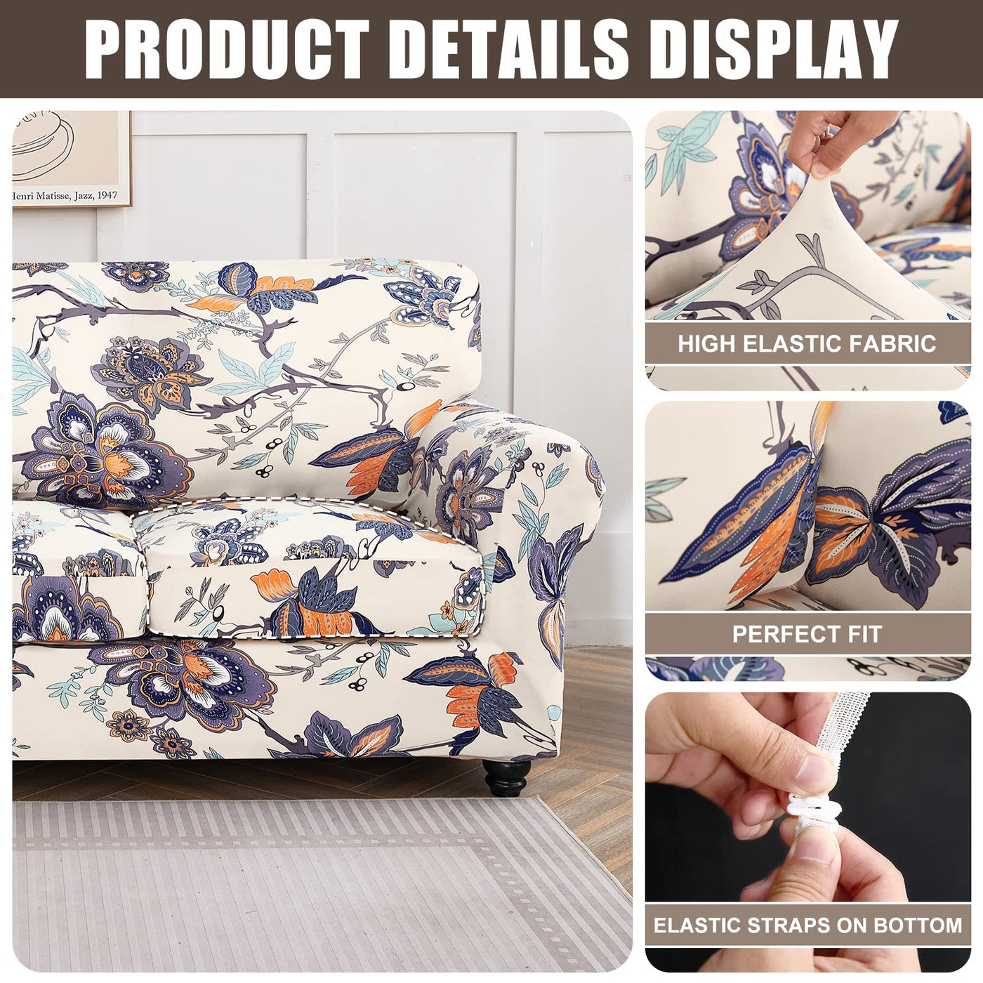 SearchI Stretch Sofa Cover Printed Couch Covers, Floral Pattern 2 Piece Armchair Slipcover with Separate Chair Cushion Cover, Washable Furniture Protector for Living Room(Armchair, Flower Pattern)