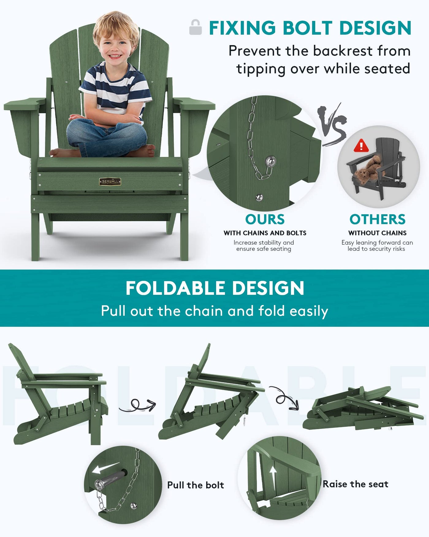 Serwall Adirondack Chair For Patio Garden Outdoors Fire Pit- Army
