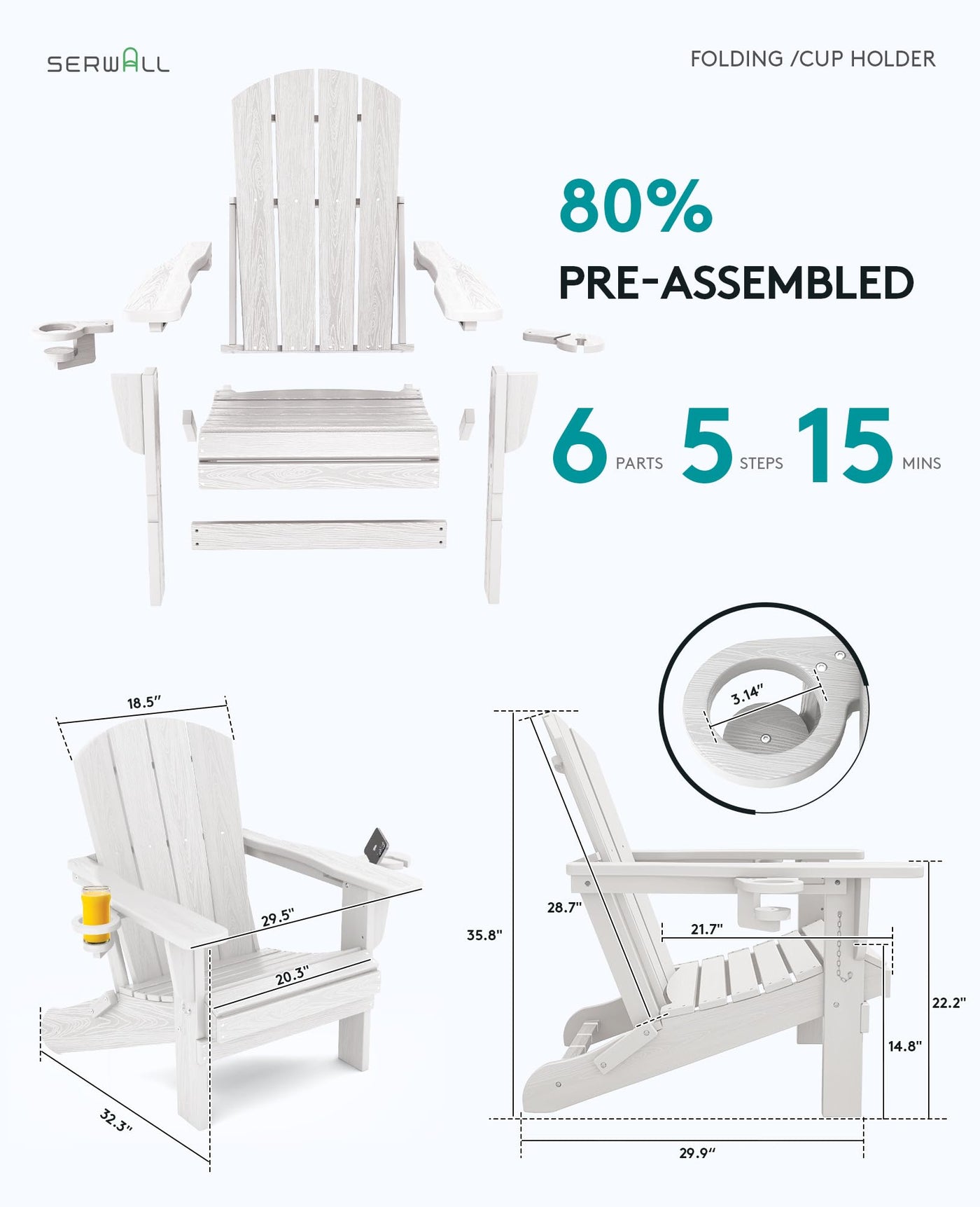 Serwall Adirondack Chair With Cup Holders - Composite Adirondack Chairs Hdpe Outdoor Chairs All Weather Use- White