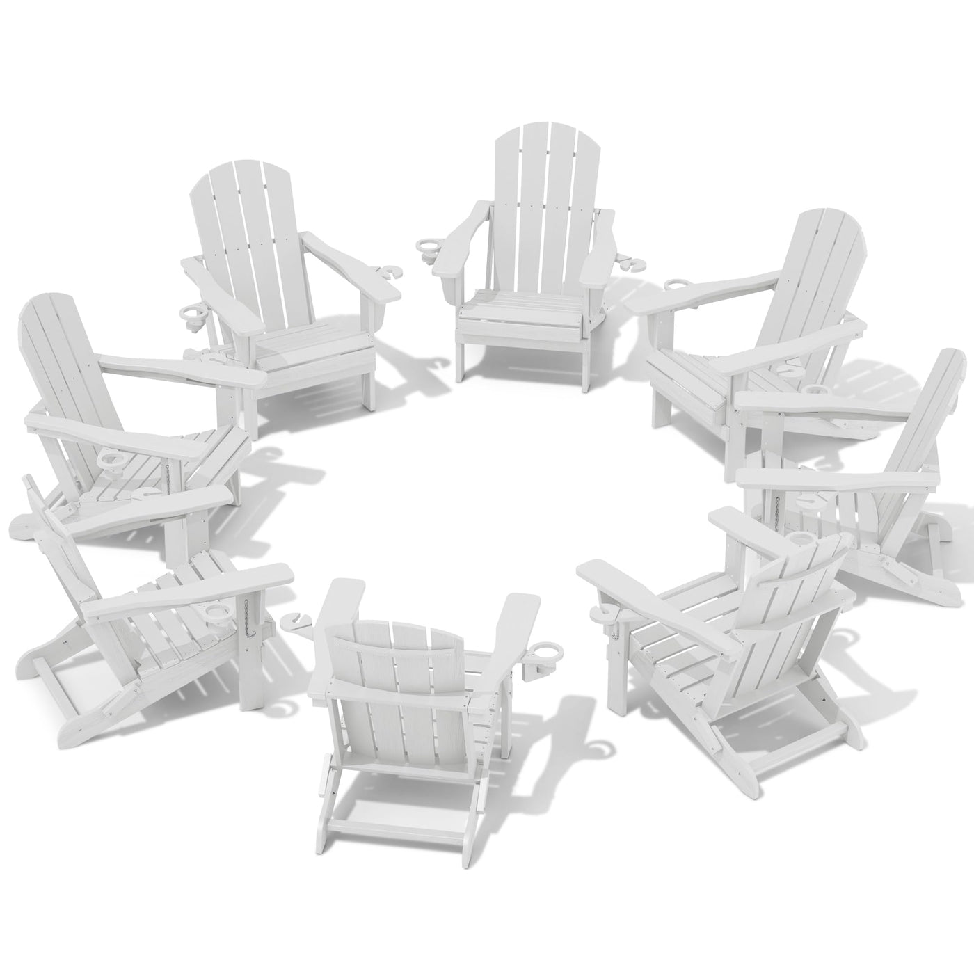 Serwall Adirondack Chair With Cup Holders - Composite Adirondack Chairs Set Of 8 Hdpe Outdoor Chairs All Weather Use- White