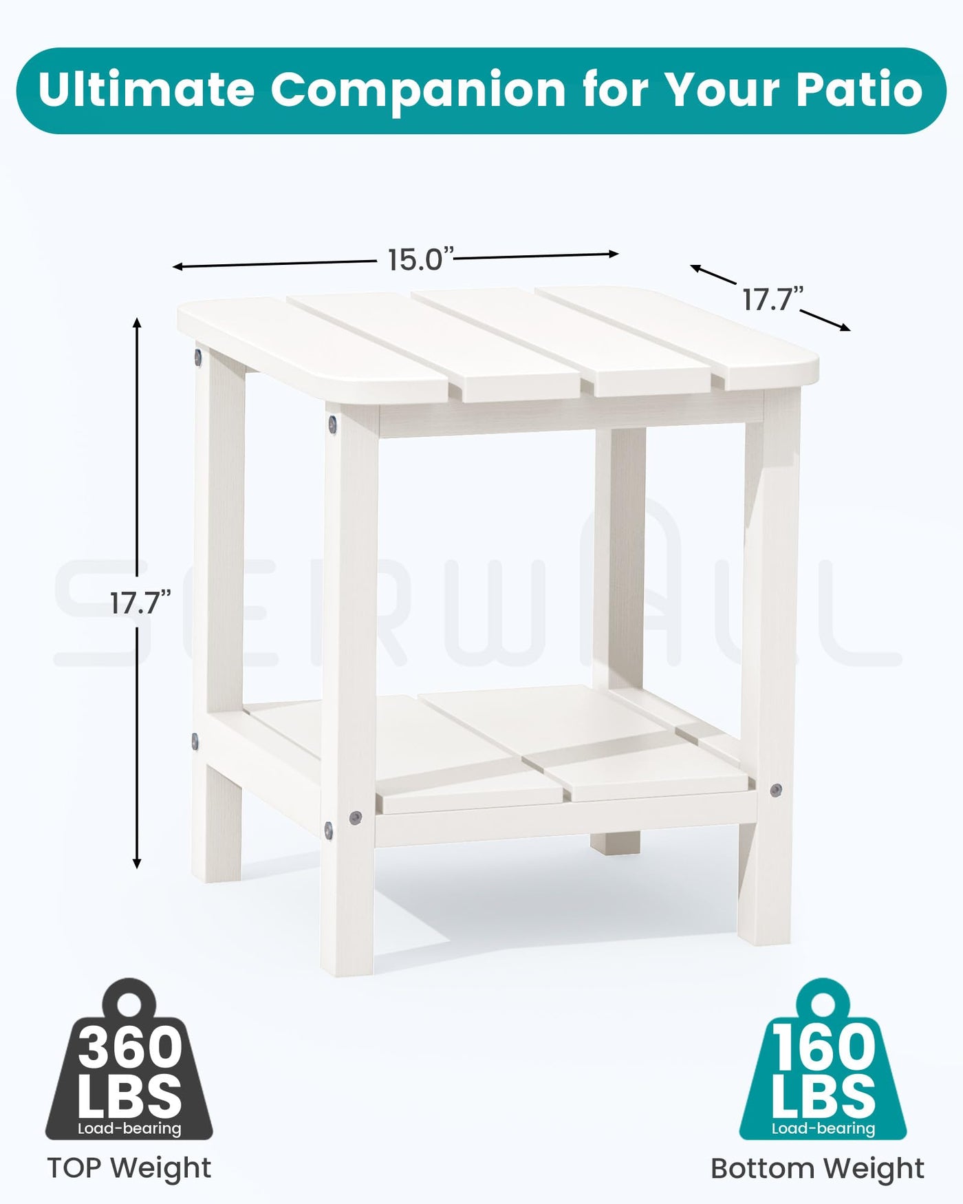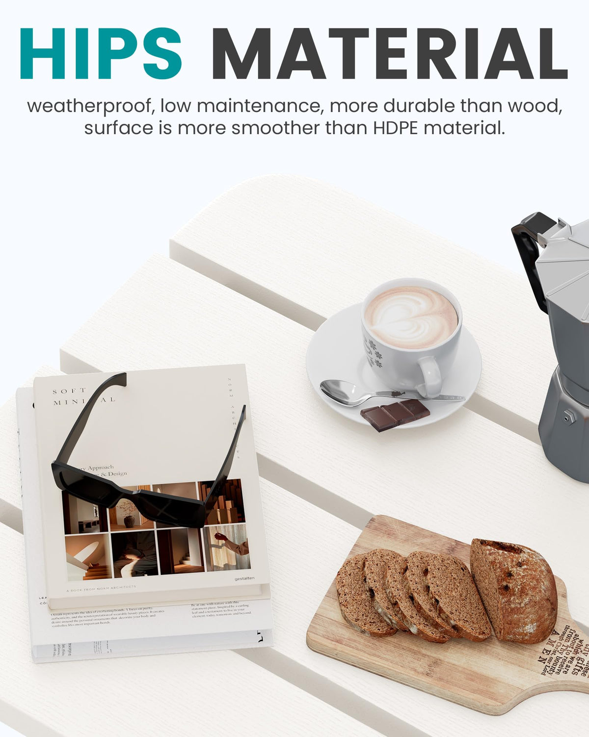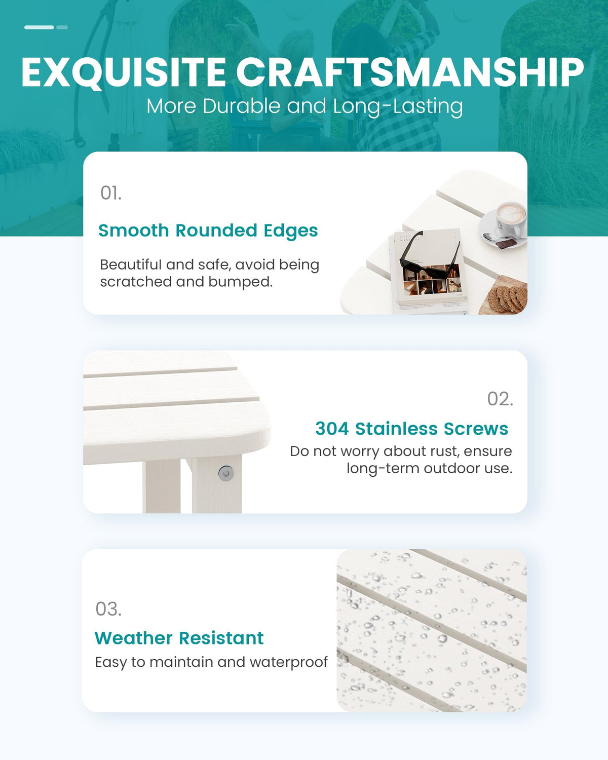 Q: Are these Adirondack chairs weather resistant?A: Yes, the chairs are made from HDPS material with a wood texture that is weather resistant, ensuring durability against wind and rain.