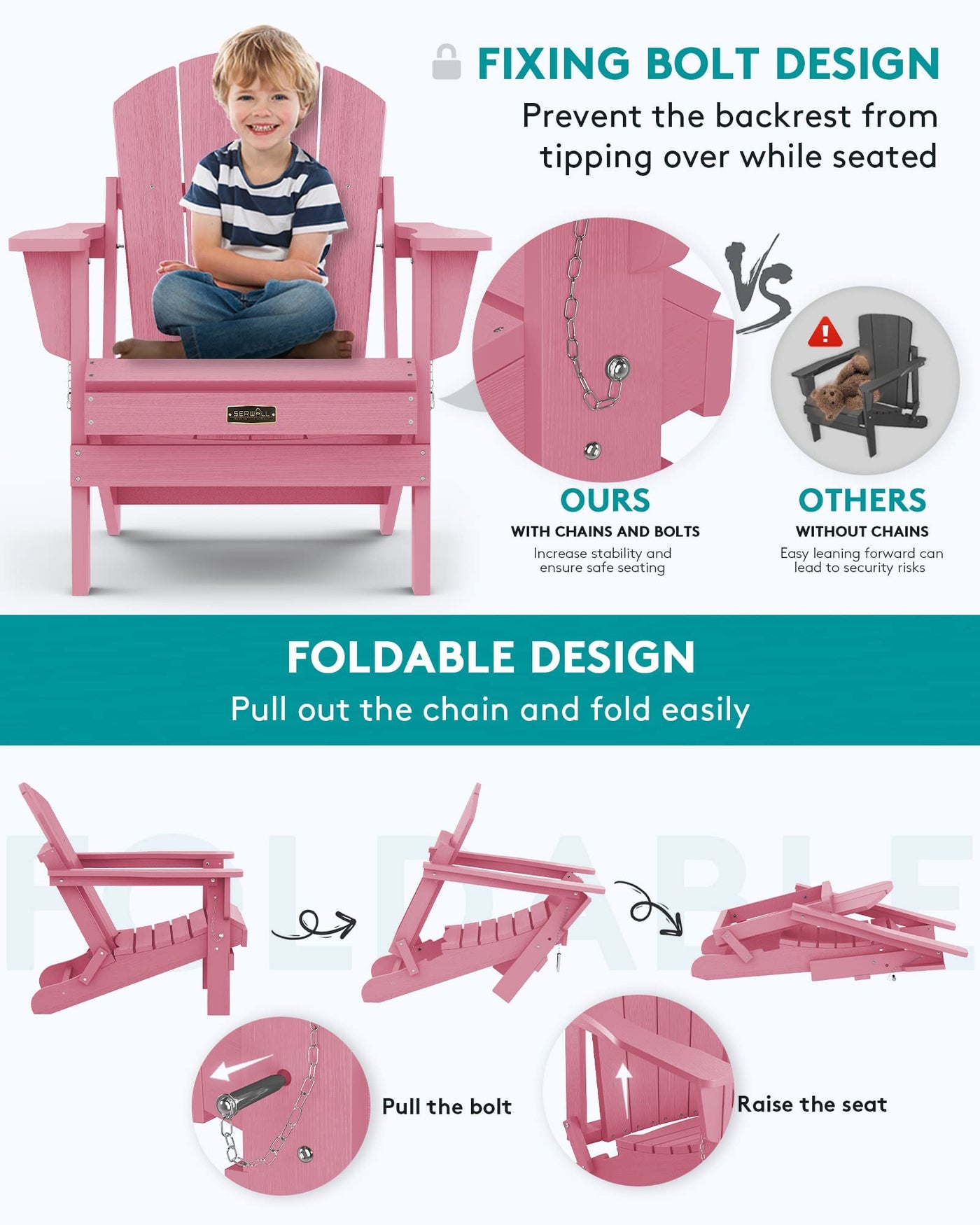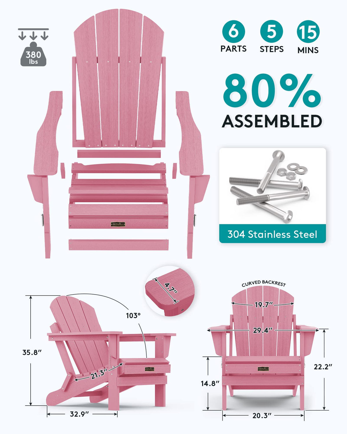Serwall Folding Adirondack Chair Set Of 4- Light Pink