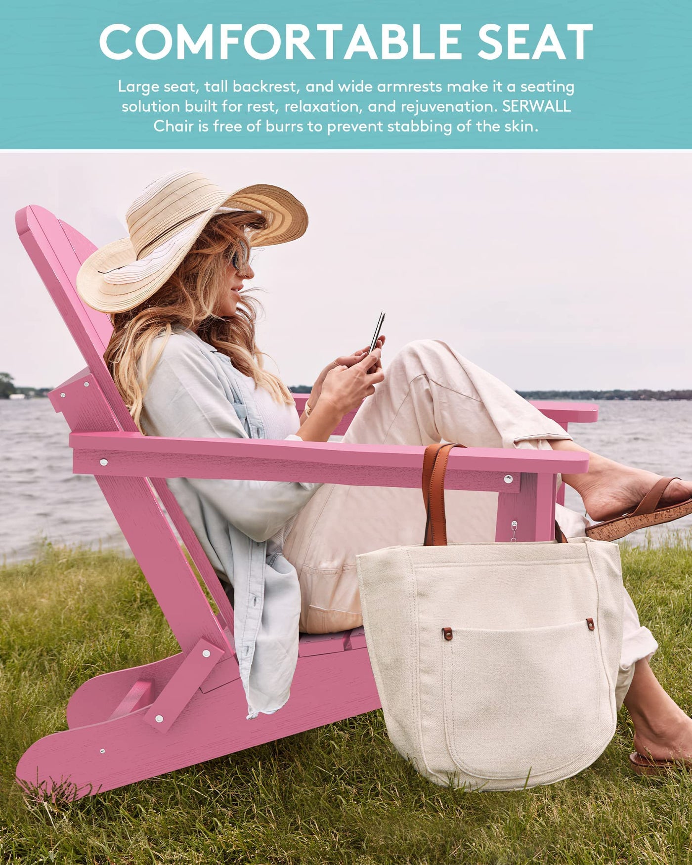Serwall Foldable Adirondack Chair Set Of 4 For Patio Garden Outdoors Fire Pit- Lightpink