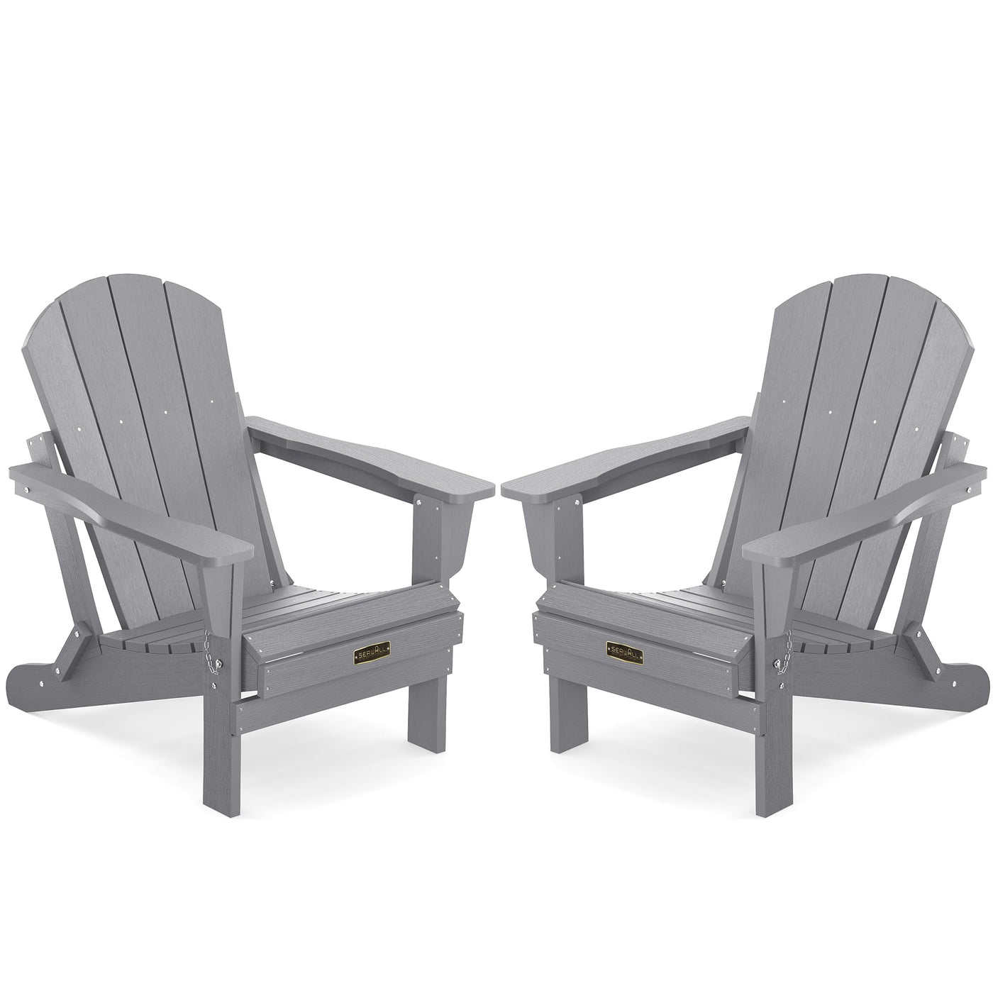 Serwall Folding Adirondack Chair Painted Adirondack Chair Set Of 2 Weather Resistant For Patio Deck Garden, Backyard Deck, Fire Pit & Lawn Furniture - Light Gray