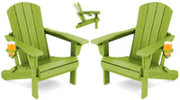 Serwall Folding Adirondack Chair Set Of 2, Reclining Adirondack Chair With Cup Holder, Adjustable Adirondack Chair With 3 Recline Positions, All Weather Hdpe Outdoor Adirondack, Apple