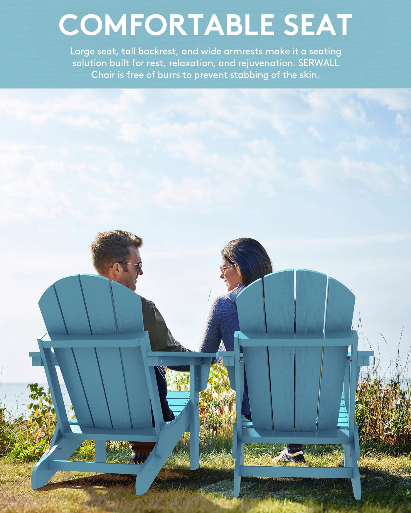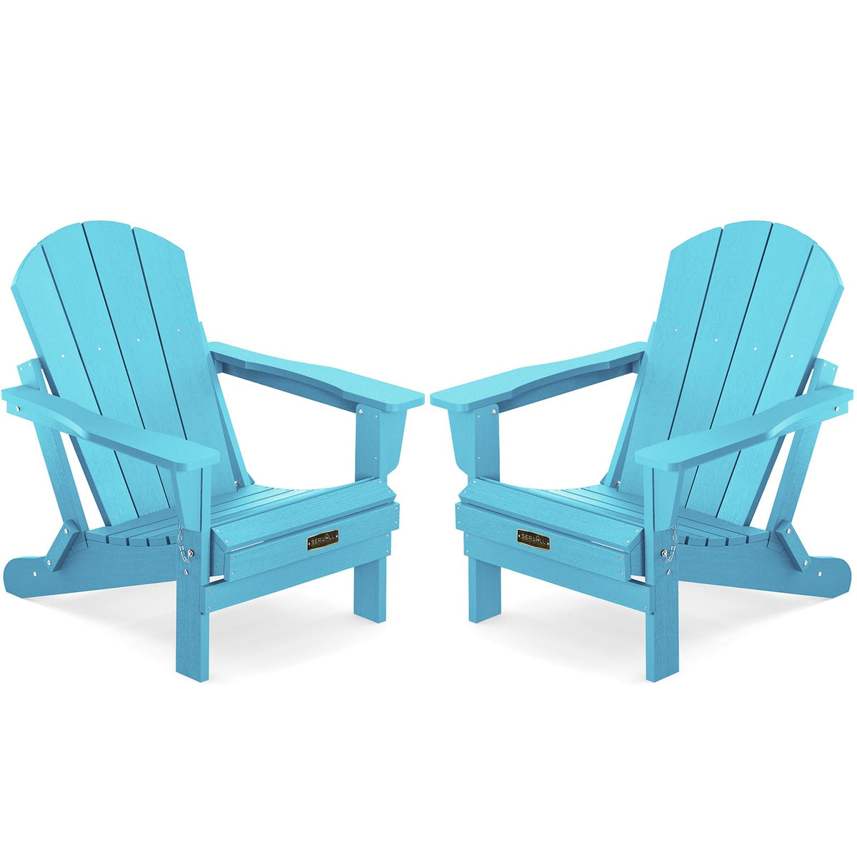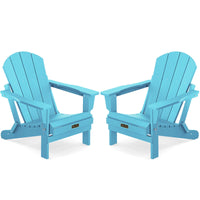 Serwall Folding Adirondack Chair Weather Resistant Patio Chair Outdoor Chairs Painted Adirondack Chairs Set Of 2 - Aruba Blue