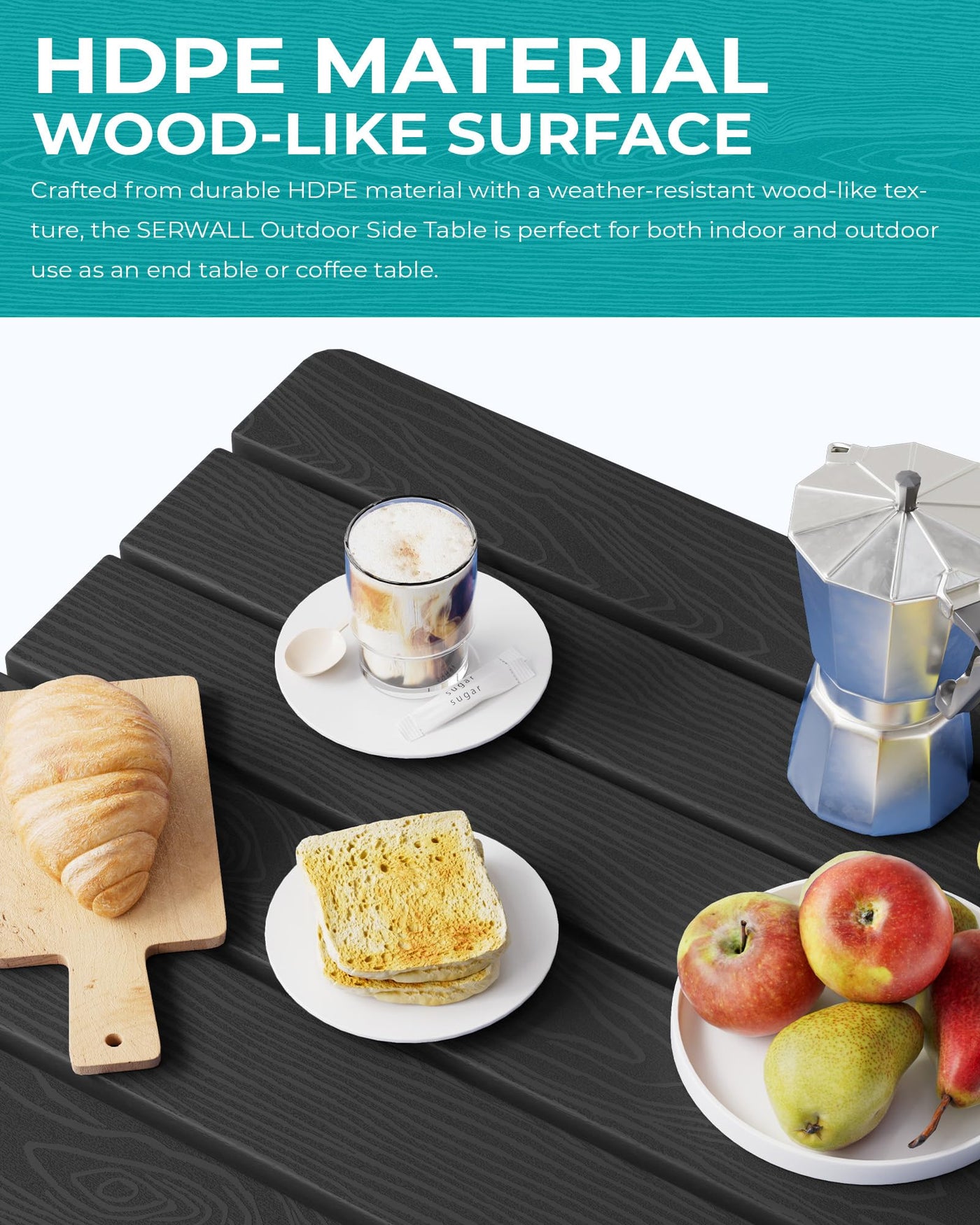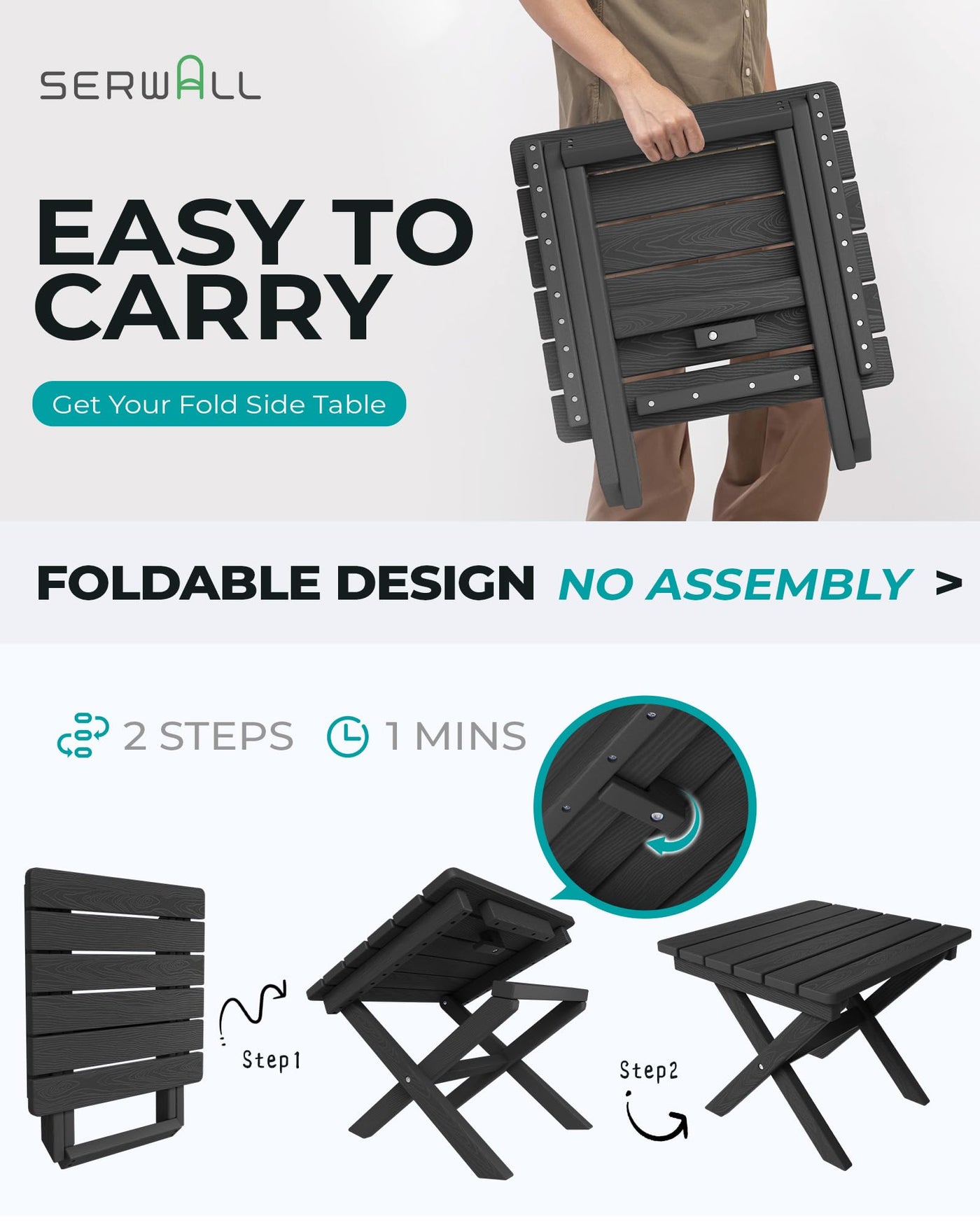 Serwall Folding Outdoor Side Table, Hdpe Adirondack Side Table, Portable Outdoor End Table, Black