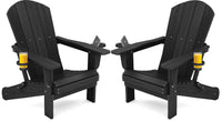 Serwall Hdpe Folding Adirondack Chair With Dual Cup Holder - Composite Adirondack Chair Set Of 2- Black