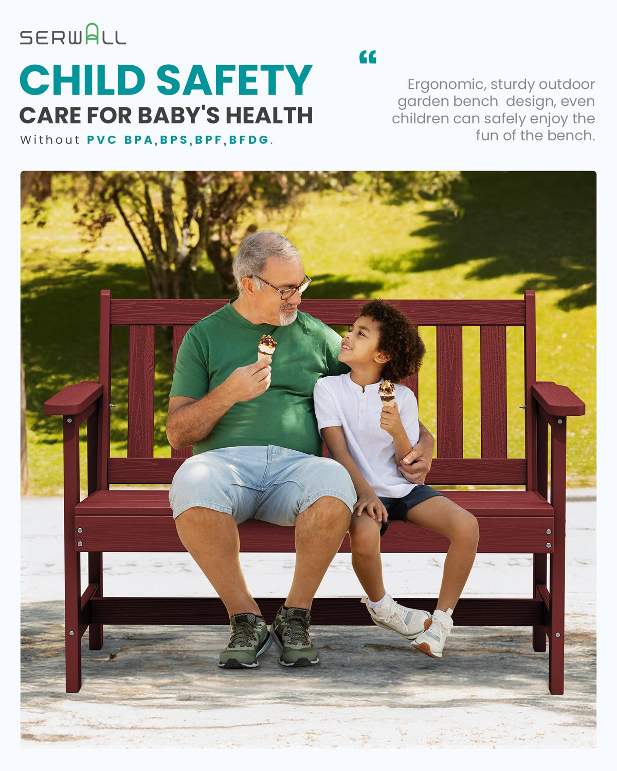 Serwall Outdoor Bench, Hdpe Outdoor Benches Weatherproof, 2-Person Garden Bench With 660 Lbs Weight Capacity, Patio Benches For Outdoors, Garden, Porch, Backyard And Park, Red