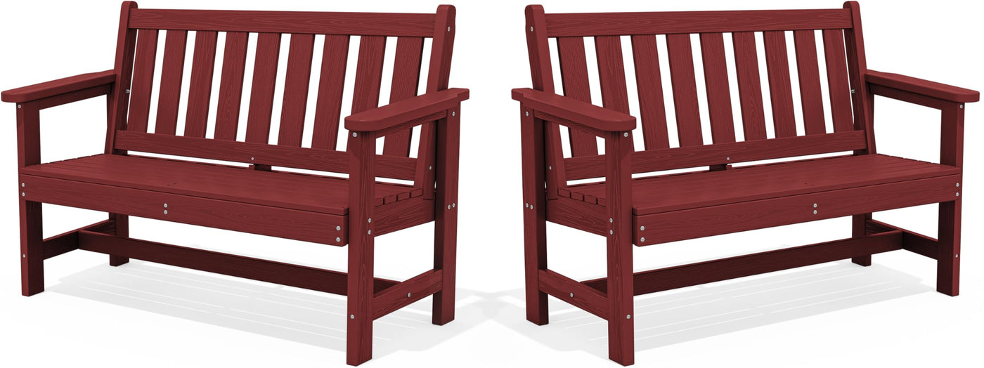 Serwall Outdoor Bench, Hdpe Outdoor Benches Weatherproof, 2-Person Garden Bench With 660 Lbs Weight Capacity, Patio Benches For Outdoors, Garden, Porch, Backyard And Park, Red, 2 Pack