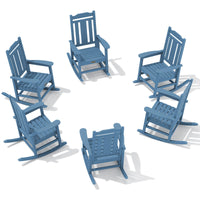 Serwall Outdoor Rocking Chair Blue Set Of 6, All Weather Patio Rocking Chair, Hdpe Poly Rocking Chair For Adults, Heavy Duty Front Porch Rocker