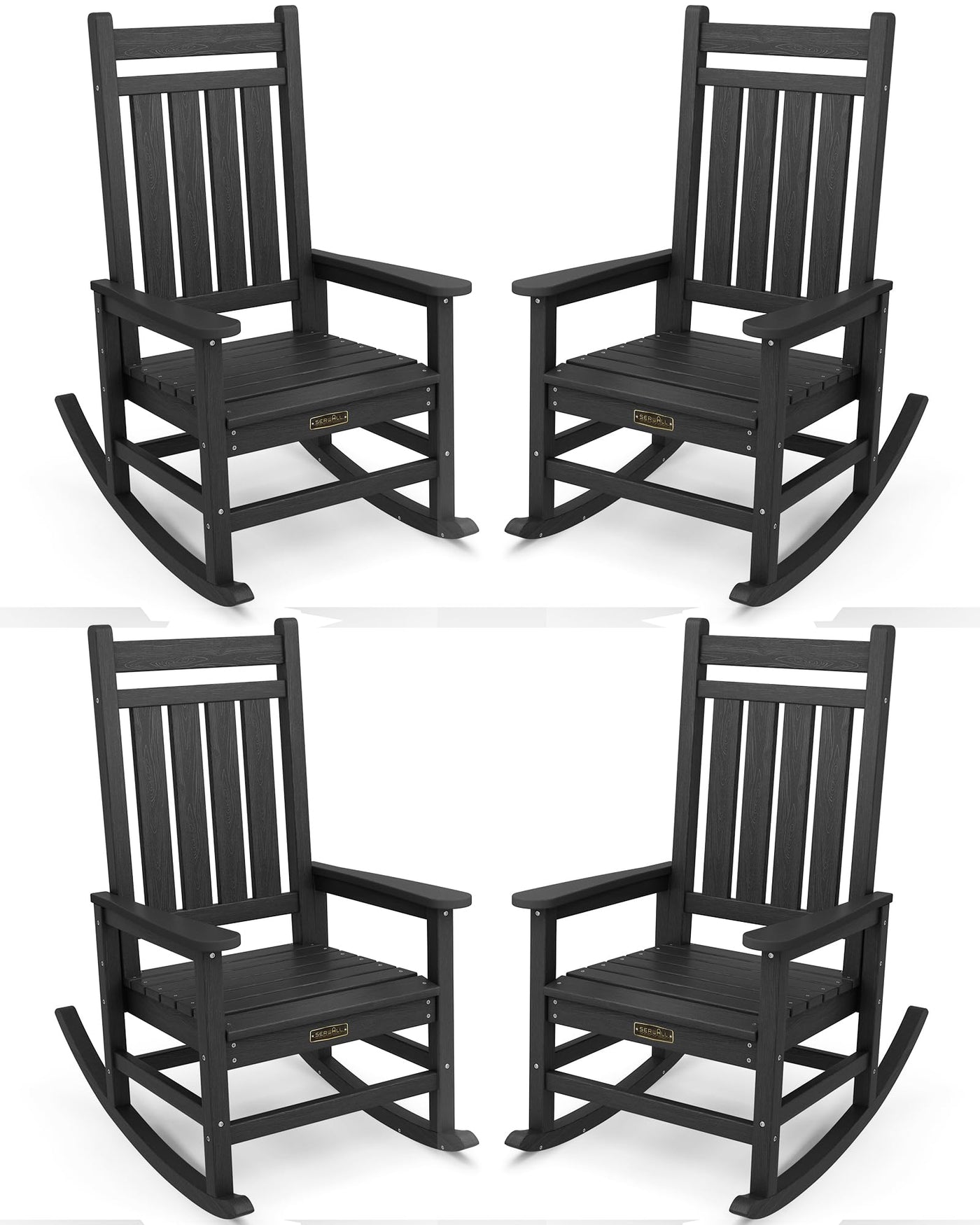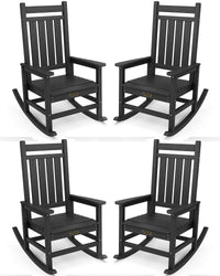 Serwall Outdoor Rocking Chair Set Of 4,Hdpe Rocking Chairs For Adult, All Weather Porch Rockers For Lawn Garden, Black