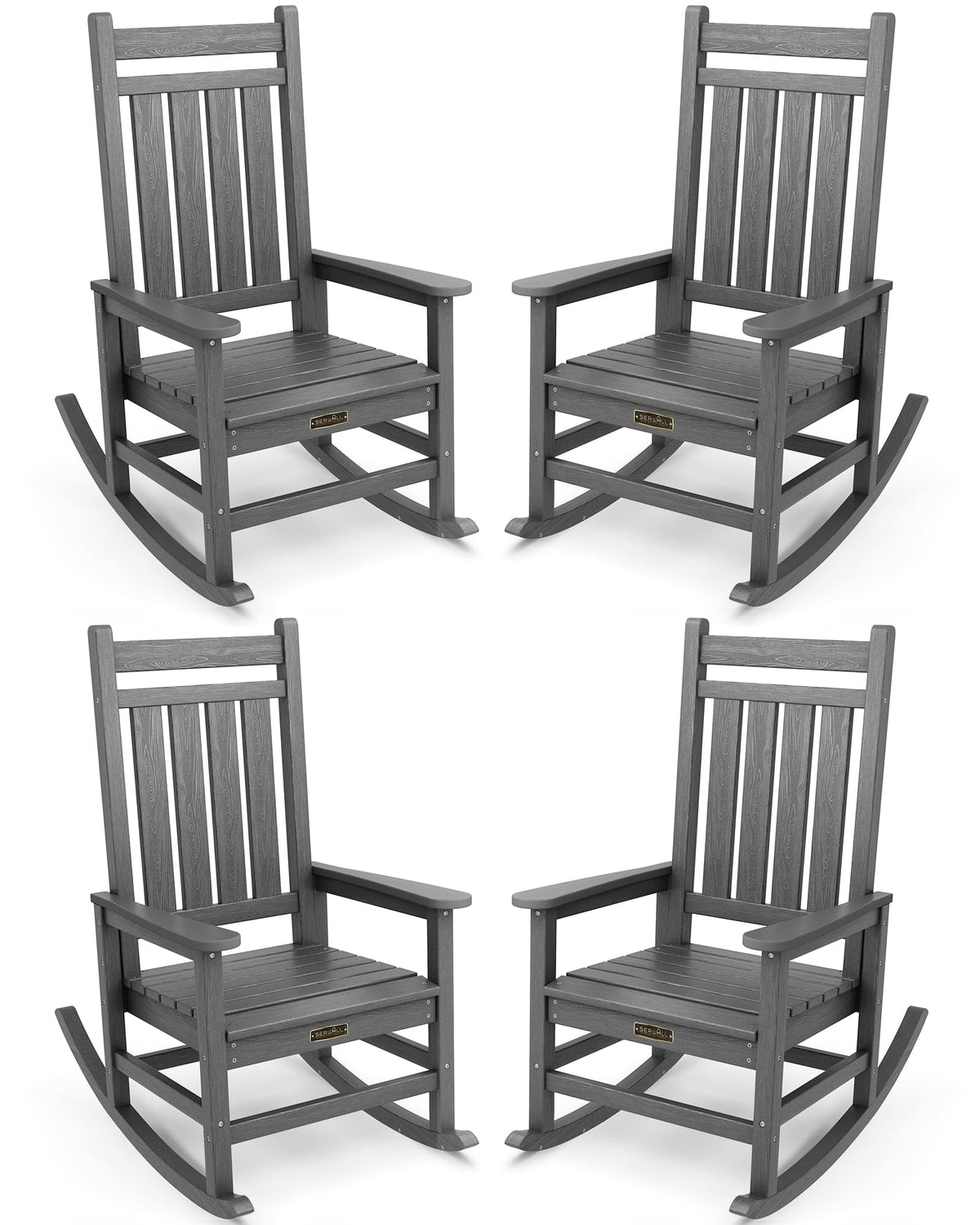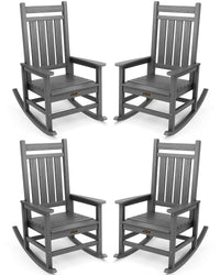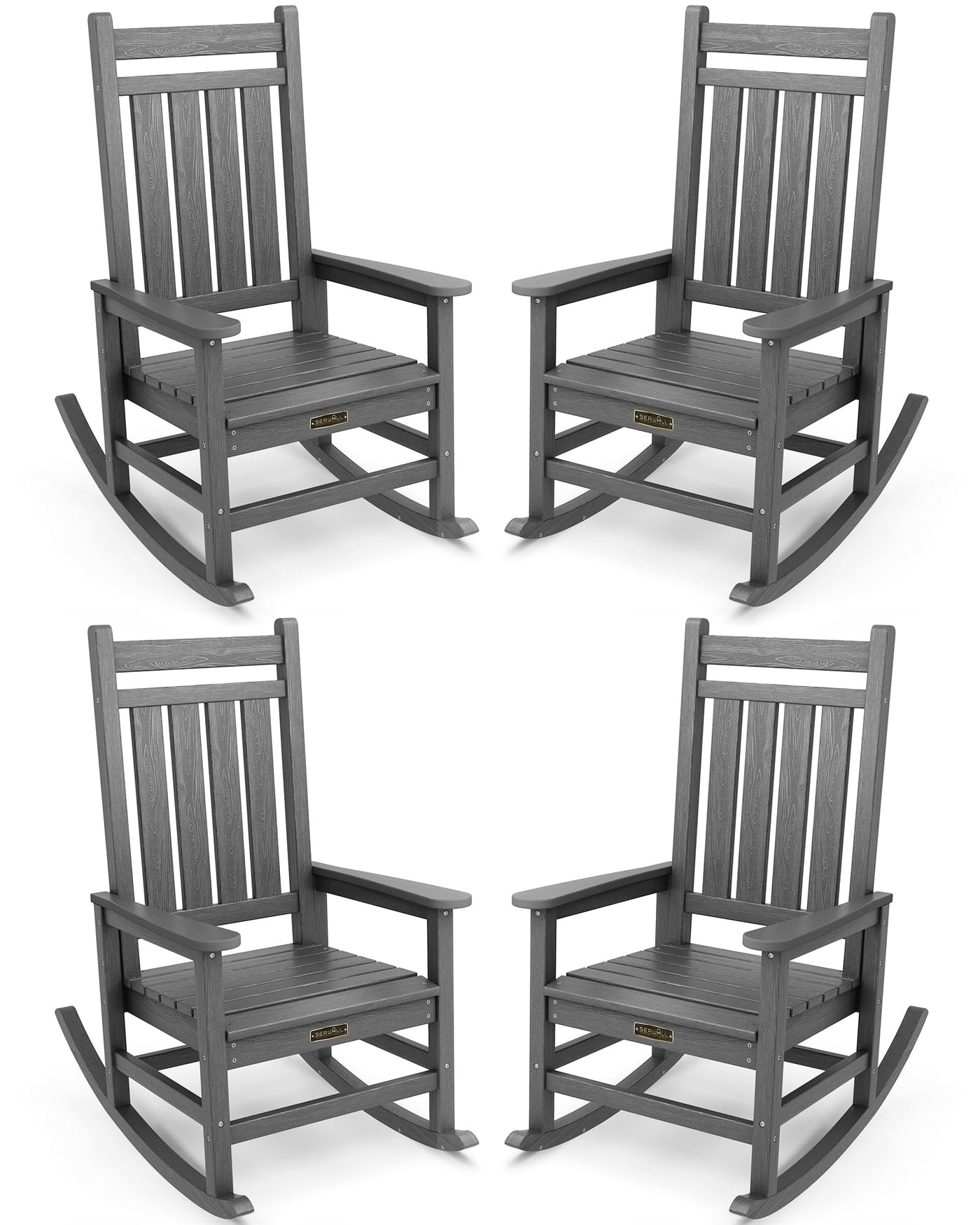 Serwall Outdoor Rocking Chair Set Of 4, Hdpe Rocking Chairs For Adult, All Weather Porch Rockers For Lawn Garden, Grey