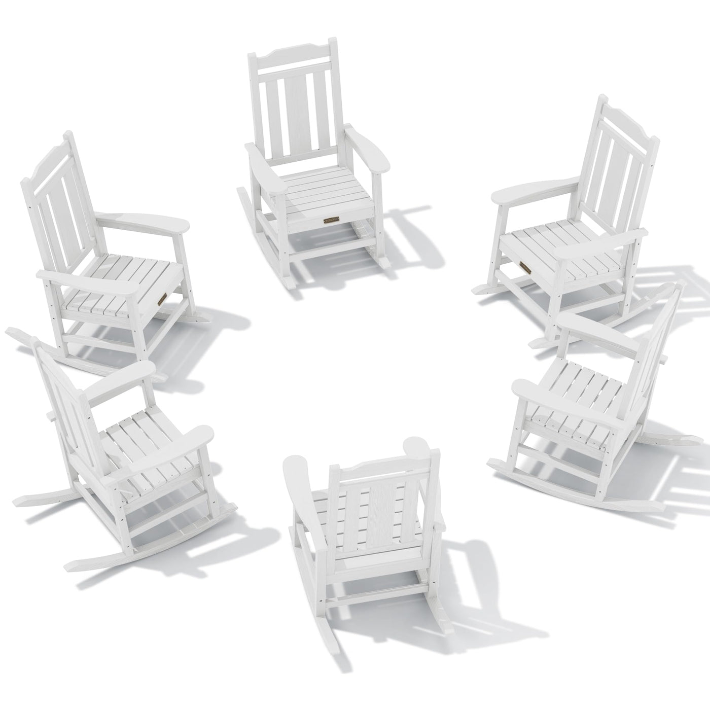 Serwall Outdoor Rocking Chair White Set Of 6, All Weather Patio Rocking Chair, Hdpe Poly Rocking Chair For Adults, Heavy Duty Front Porch Rocker
