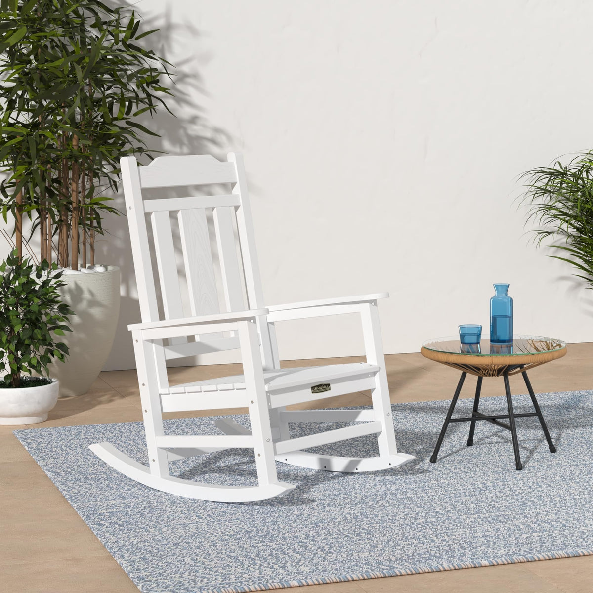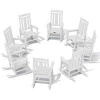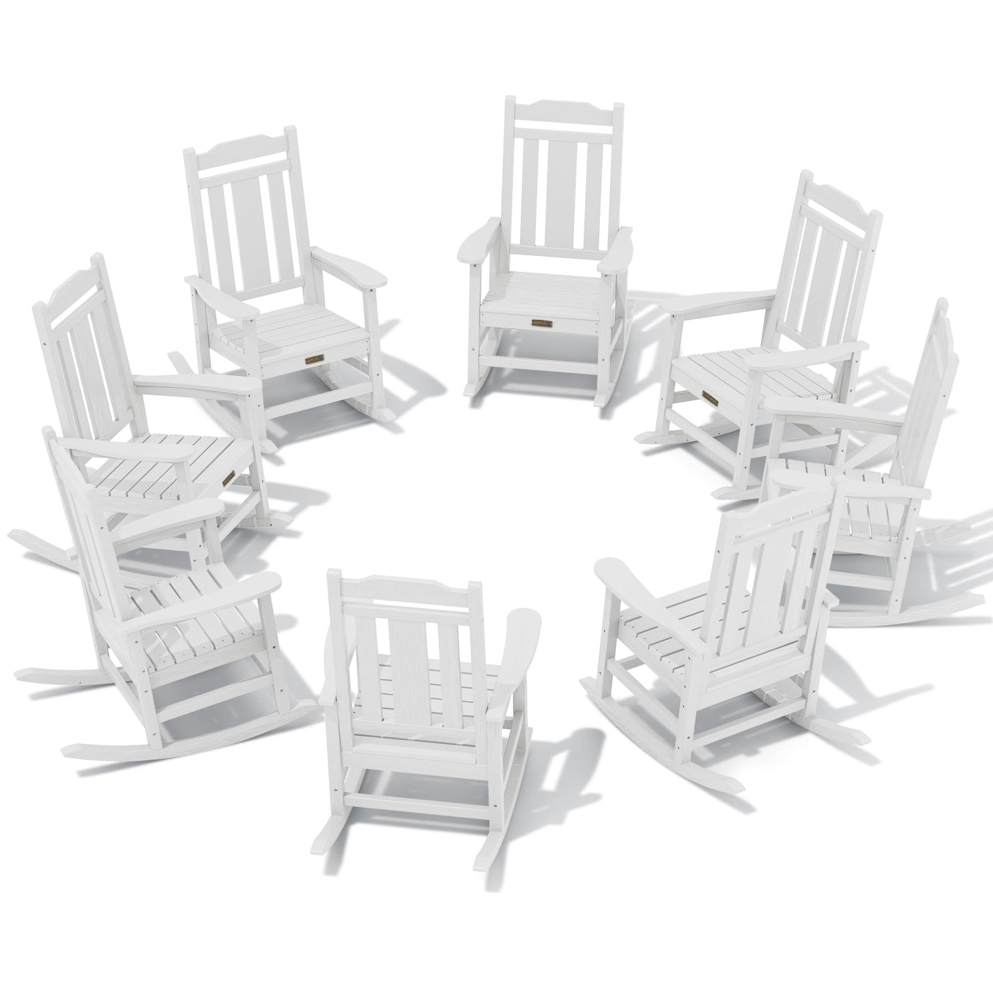 Serwall Outdoor Rocking Chair White Set Of 8, All Weather Patio Rocking Chair, Hdpe Poly Rocking Chair For Adults, Heavy Duty Front Porch Rocker