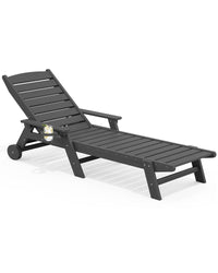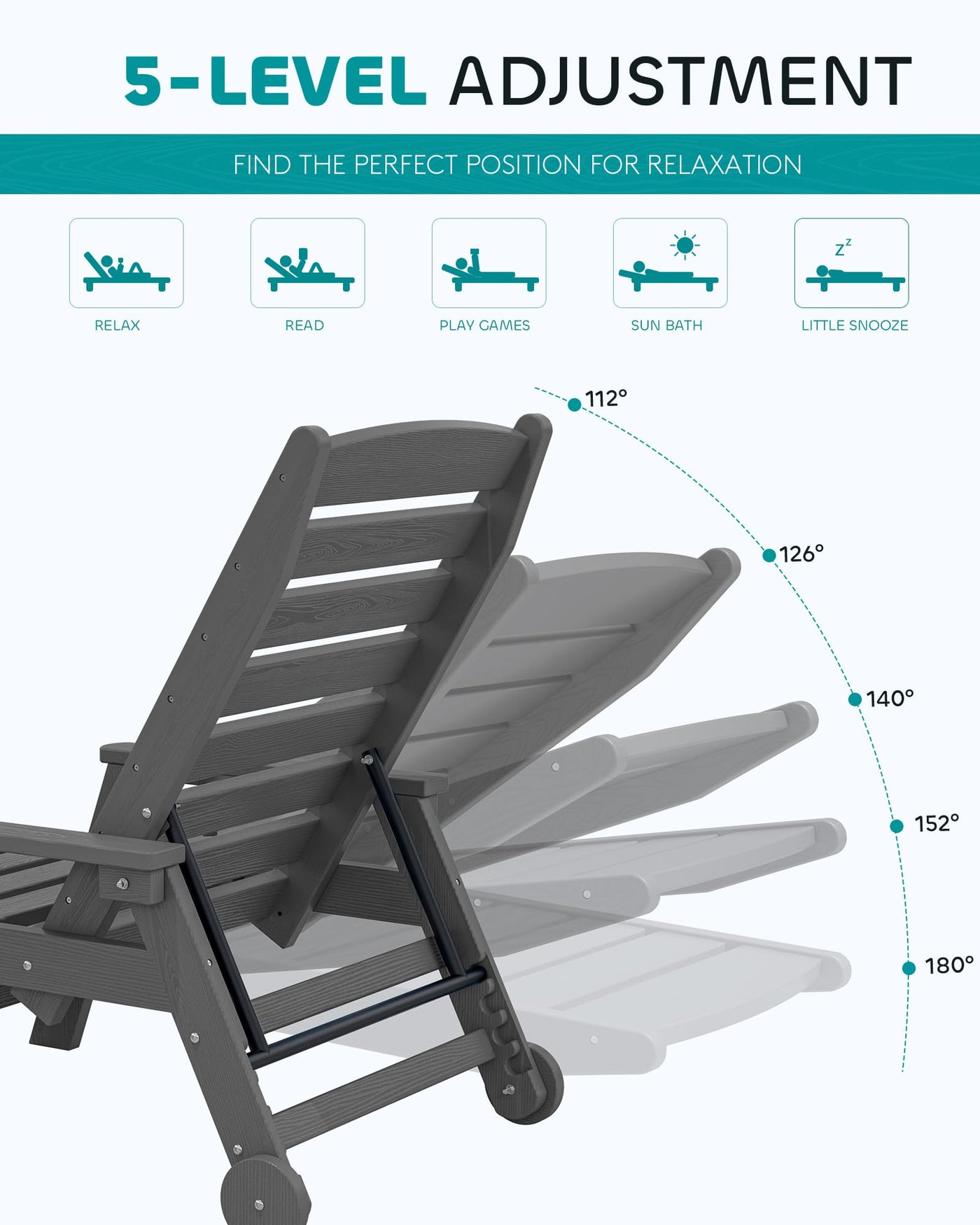Serwall Patio Chaise Lounge Chair, 78'' Long Hdpe Outdoor Lounge Chair 5 Positions Adjustable Outdoor Lounger, Poly Lounge Chair With Rolling Wheels & Cup Holder For Pool, Slate Gray