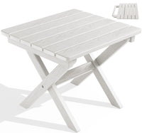 Serwall Portable Folding Adirondack Table, Hdpe Material Outdoor End Table, No Assembly Required, Weather-Resistant, 110 Lbs Capacity, Small Table For Indoor And Outdoor Uses, White