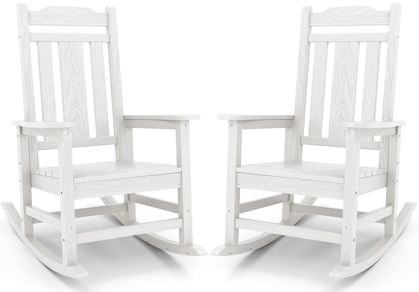 Serwall White Outdoor Rocking Chair Set Of 2, Hdpe Outdoor Rocker