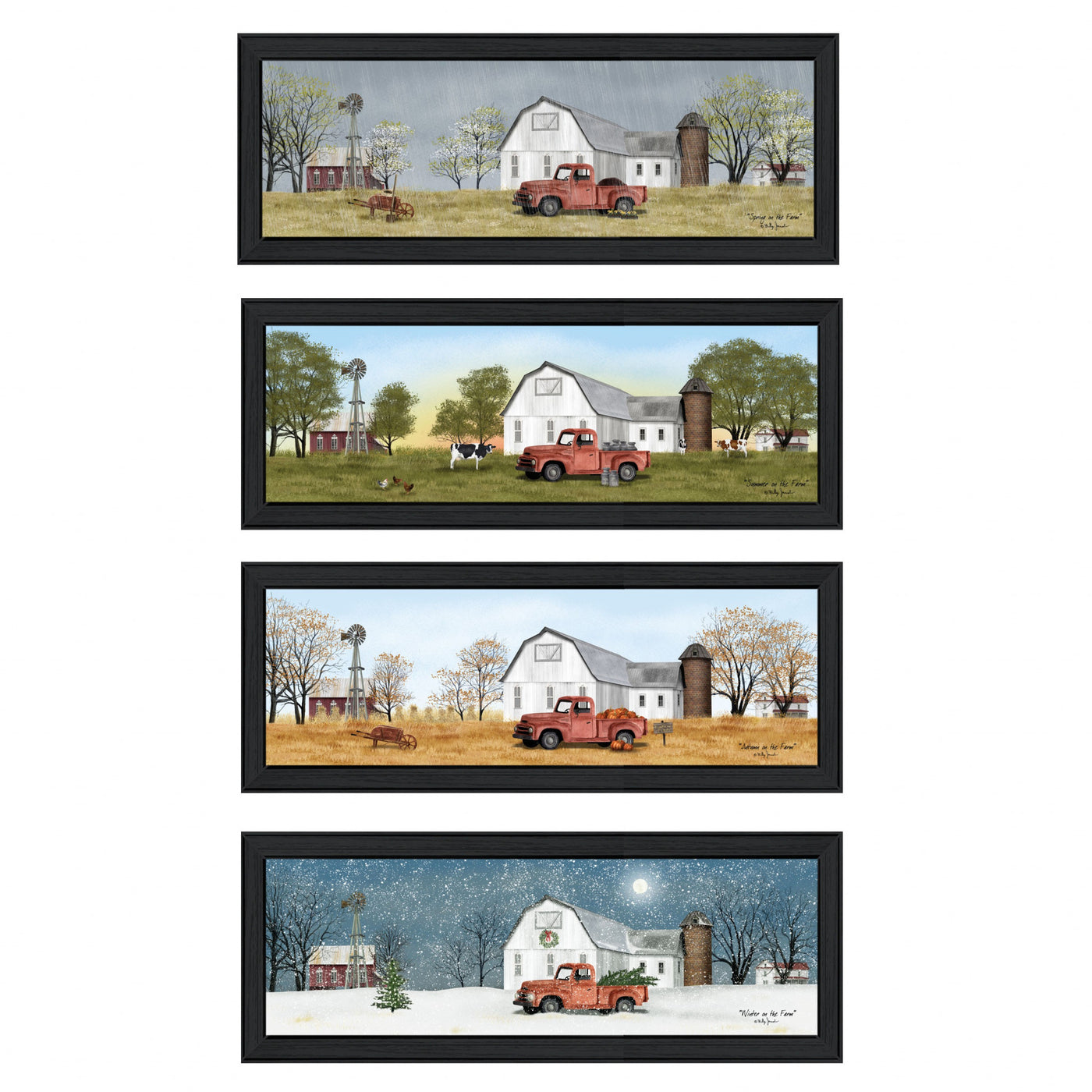 Set Of Four Billy Jacobs Four Seasons Collection VII 4-Piece 2 Black Framed Print Wall Art