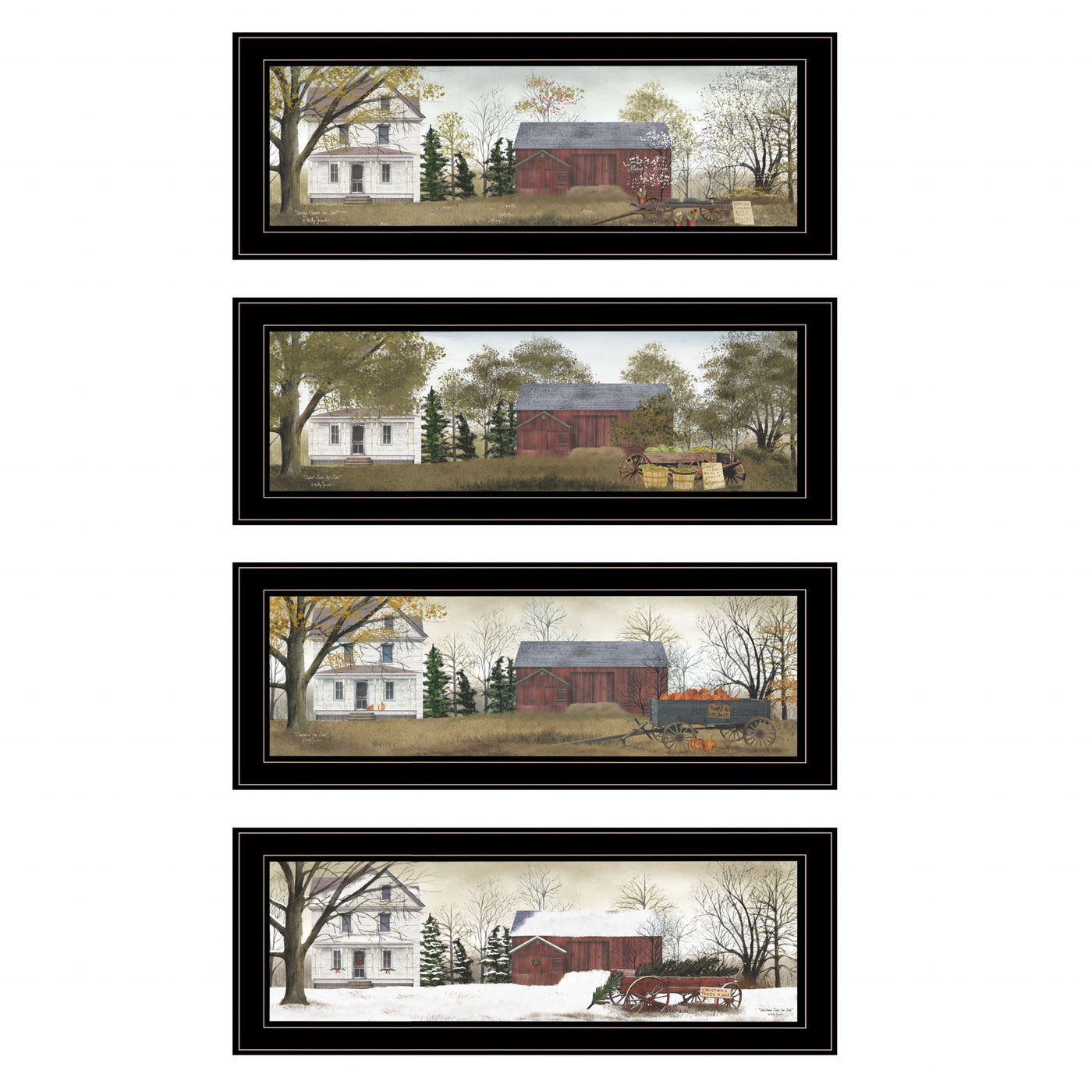 Set Of Four Seasons on the Farm Black Framed Print Wall Art Black and Gold